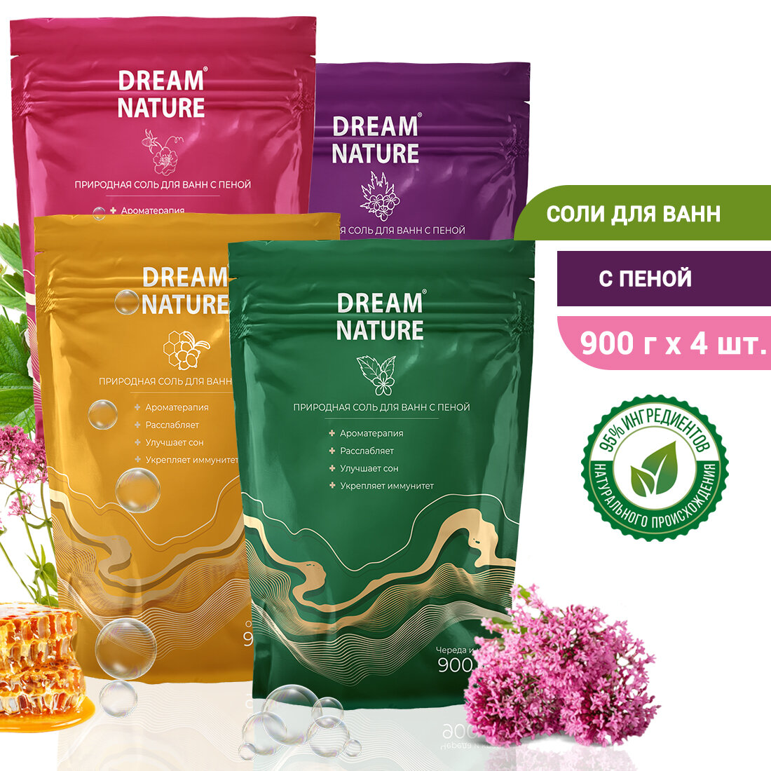 Купить Набор морской соли для ванны с пеной Dream Nature 4х900 гр