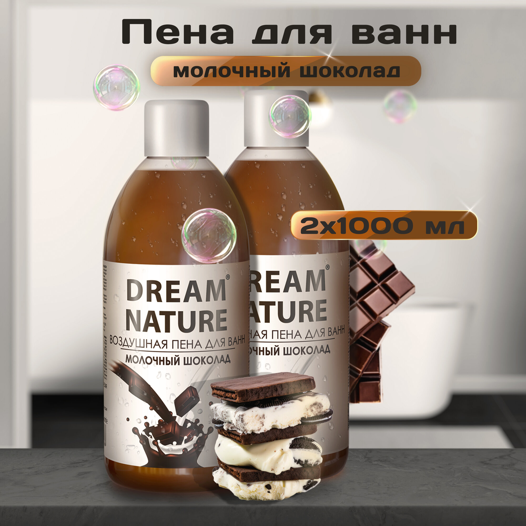 Купить Набор пены для ванны Dream Nature "Молочный шоколад", 2х1000 мл