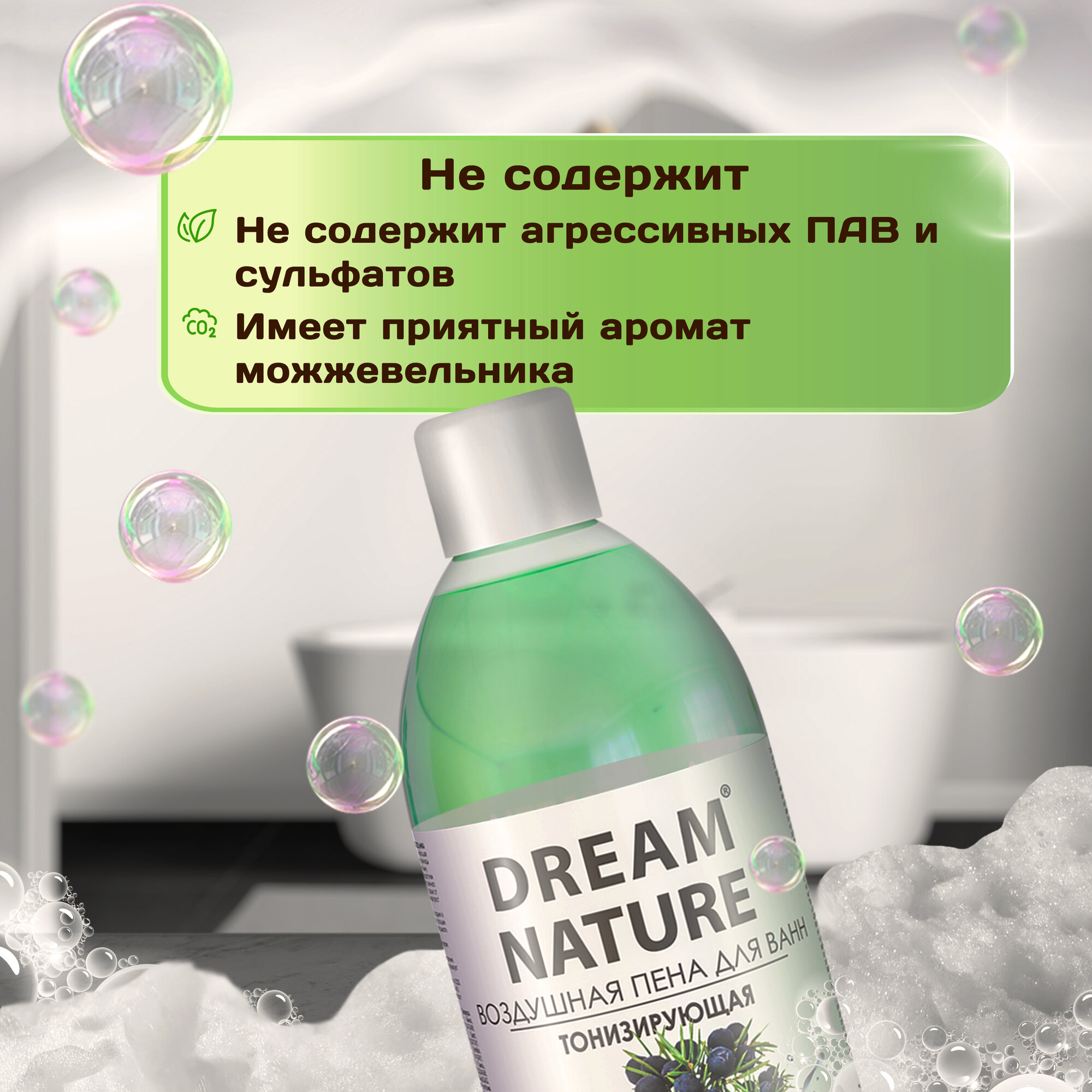 Воздушная пена для ванн Dream Nature, Тонизирующая, с ароматом можжевельника, 1 л