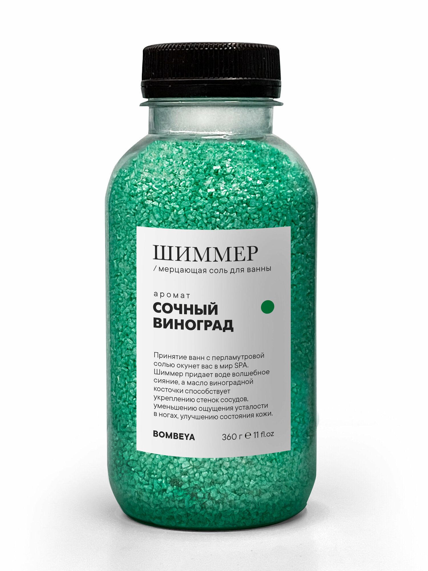 Мерцающая морская соль шиммер Bombeya для ванны с ароматом "Сочный виноград", 360 г. интересное: