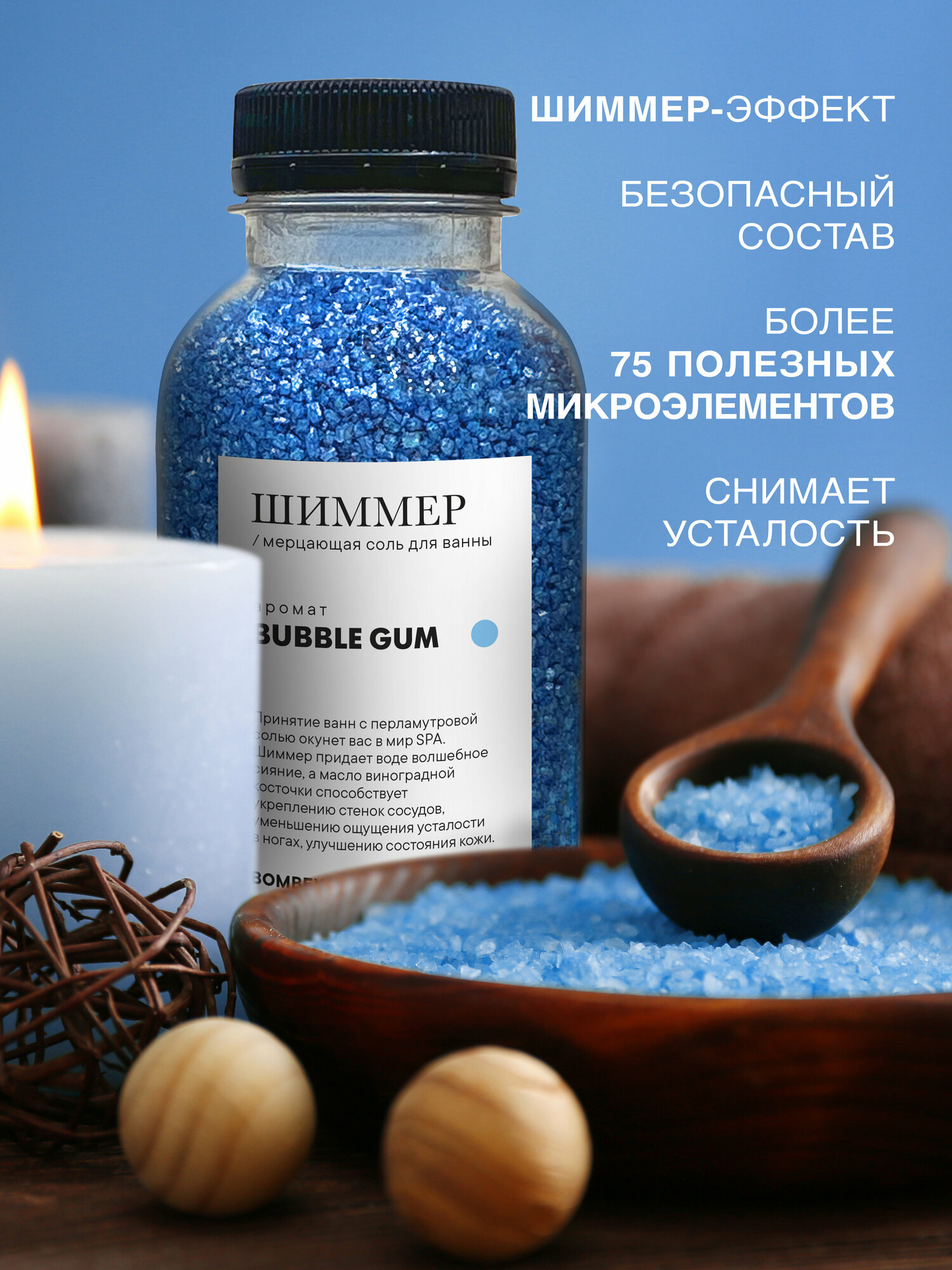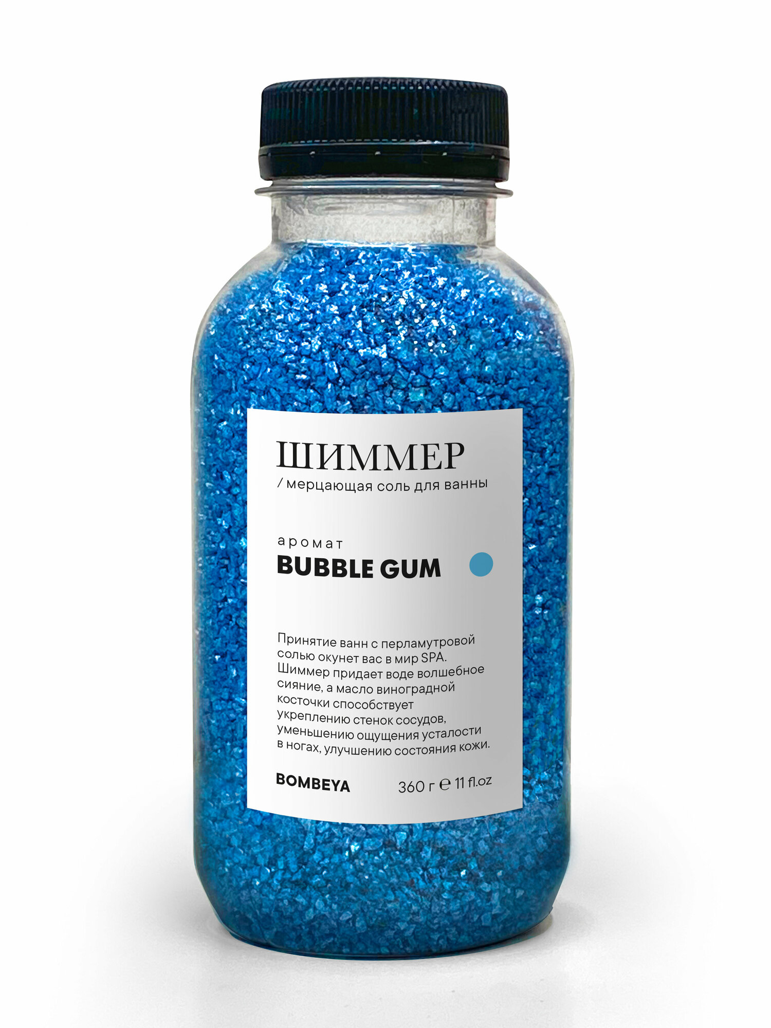 Мерцающая морская соль шиммер Bombeya для ванны с ароматом "Bubble Gum", 360 г. интересное:
