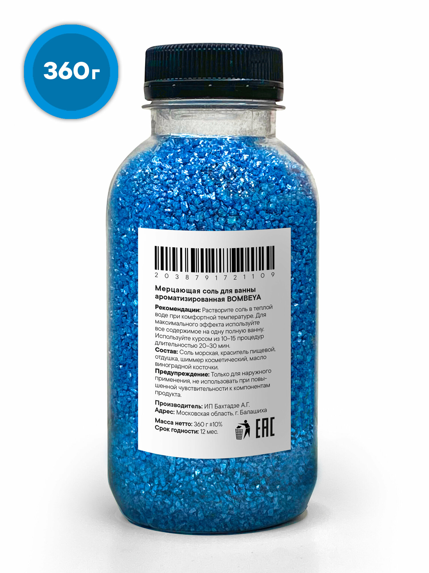 Мерцающая морская соль шиммер Bombeya для ванны с ароматом "Сочный виноград", 360 г.