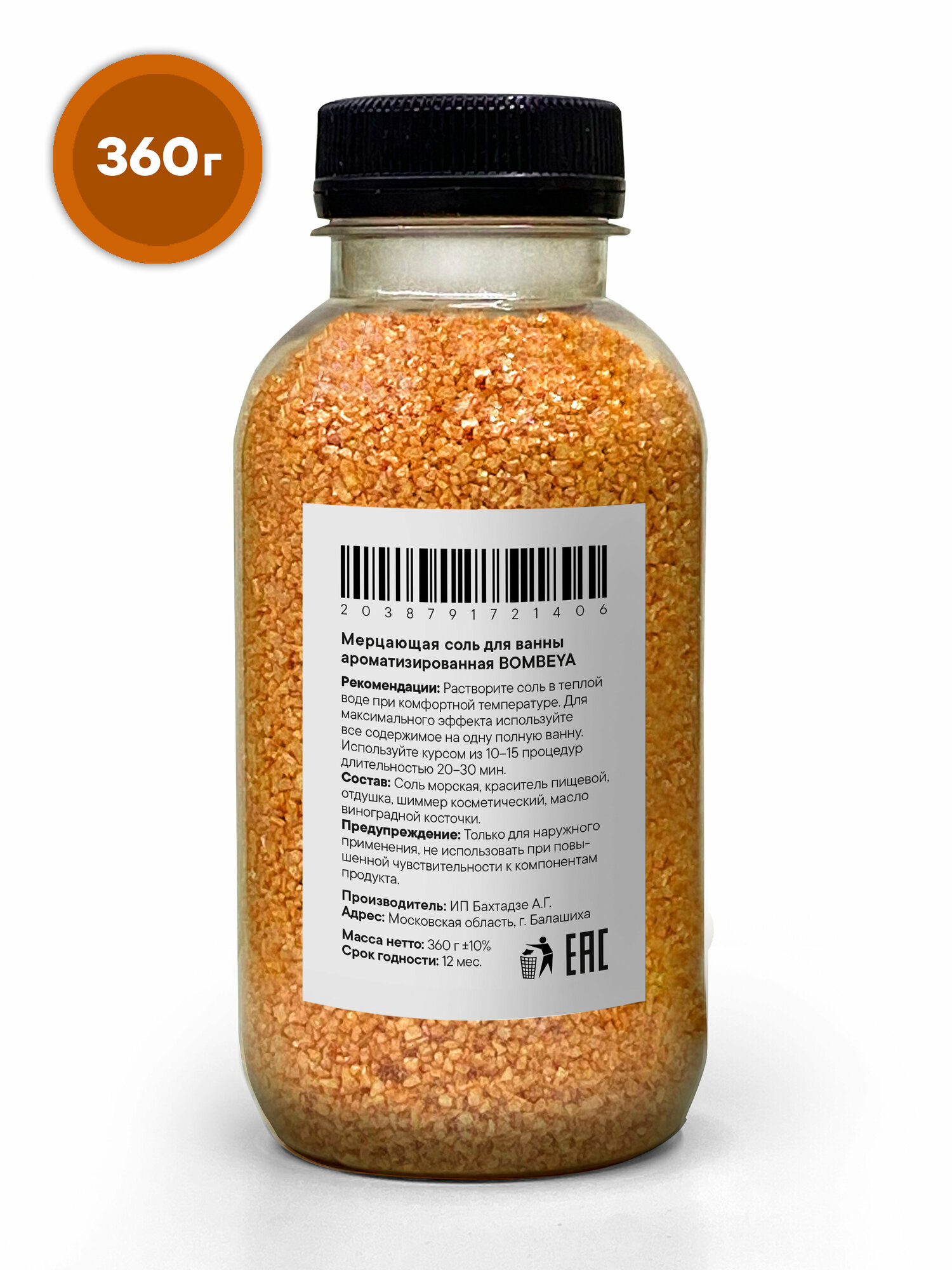 Мерцающая морская соль шиммер Bombeya для ванны с ароматом "Цитрусовый кекс", 360 г. интересное: