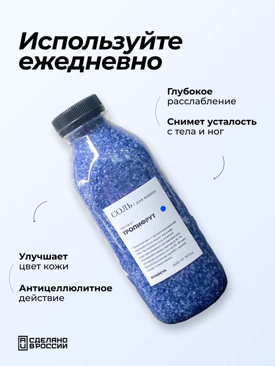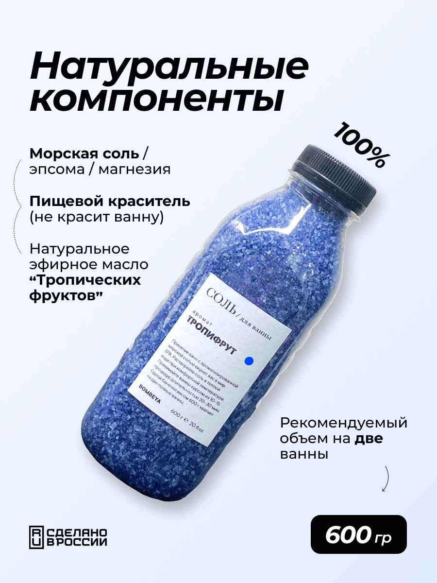 Соль для ванны магниевая с эфирным маслом и ароматом Тропифрута, 600 г. интересное: