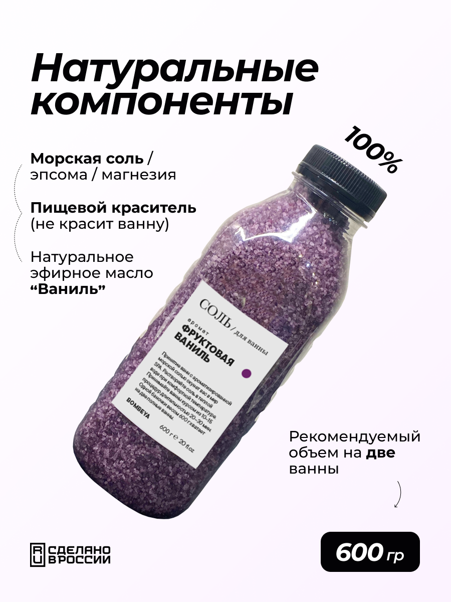Соль для ванны магниевая с эфирным маслом и ароматом Фруктовой ванили, 600 г. интересное: