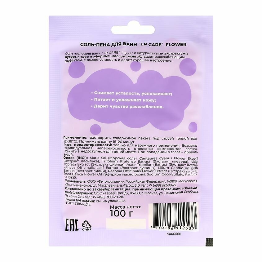 Соль-пена для ванн LP CARE Flower 100 г интересное: