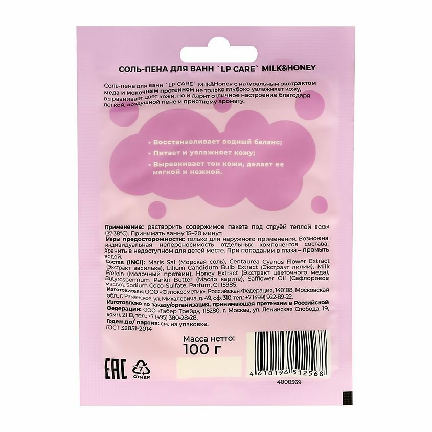 Соль-пена для ванн LP CARE Milk & Honey 100 г интересное: