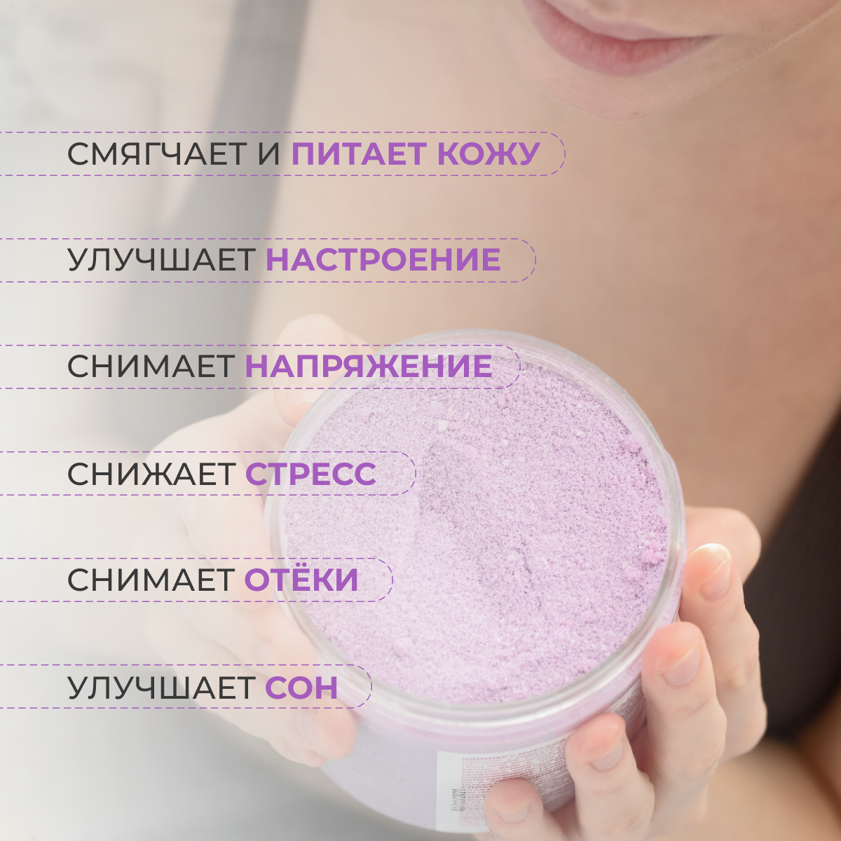 | Эффект | восстановление / очищение / питание / повышение упругости / разглаживание / расслабление / смягчение / тонизирование / увлажнение / шиммер |