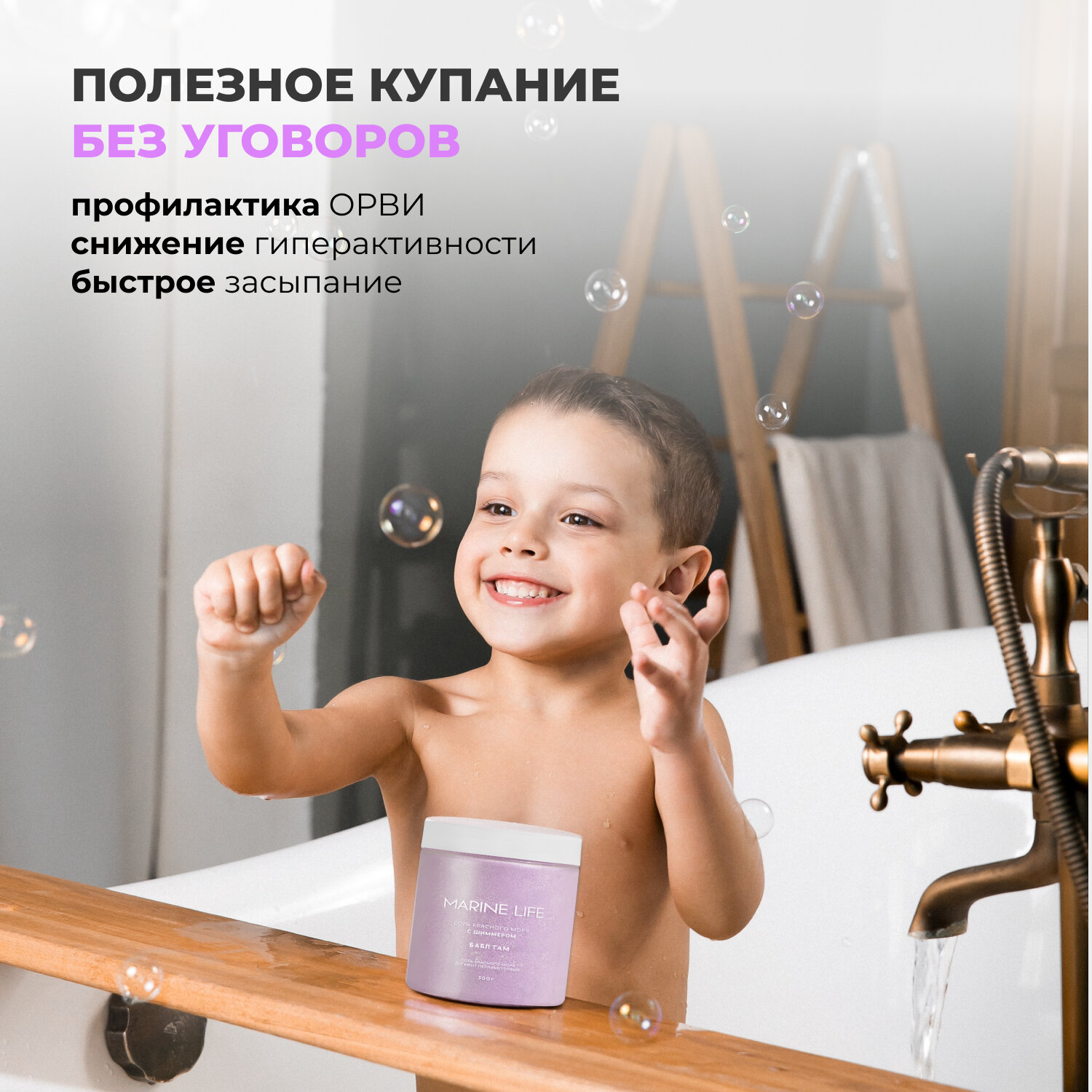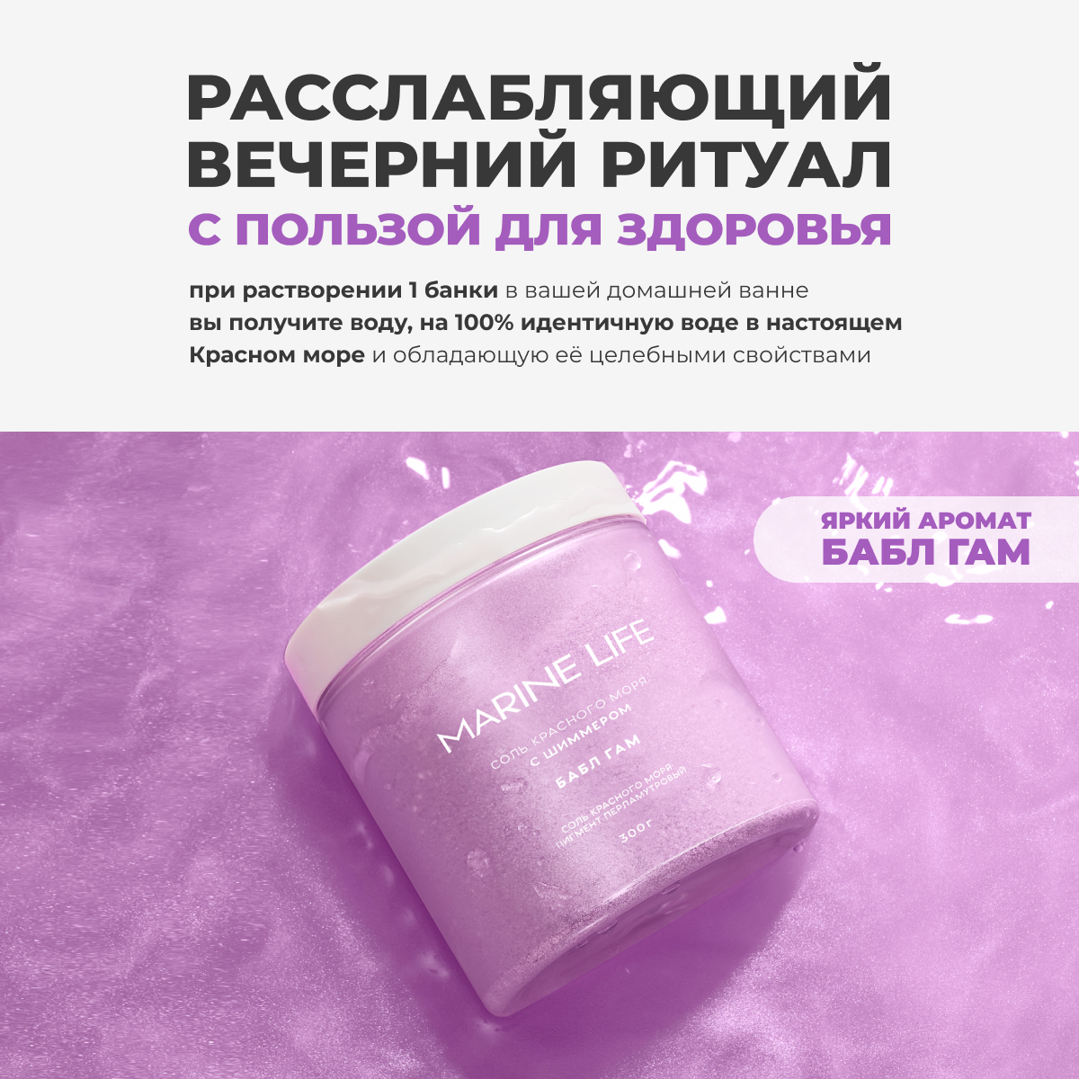 Мерцающая соль Красного моря с шиммером ароматизированная Marine Life, домашний СПА и релаксация, бабл гам