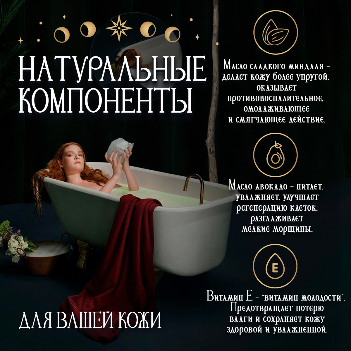 | Способ применения | Наполните ванну теплой водой, опустите бомбочку целиком в воду и отломите от нее кусочек желаемого размера и бросьте его в воду. |