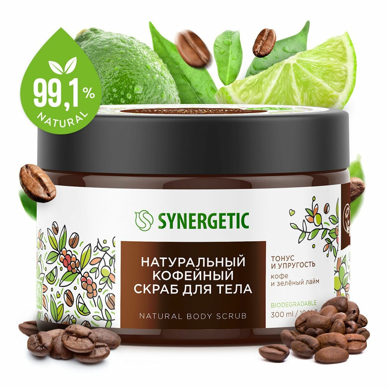 Купить Скраб для тела SYNERGETIC тонус и упругость "Кофе и зеленый лайм", 300 мл