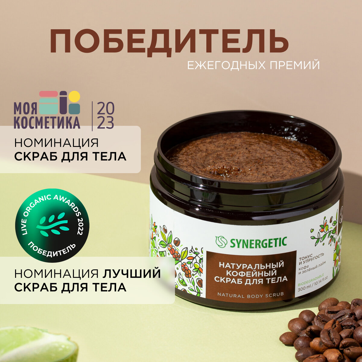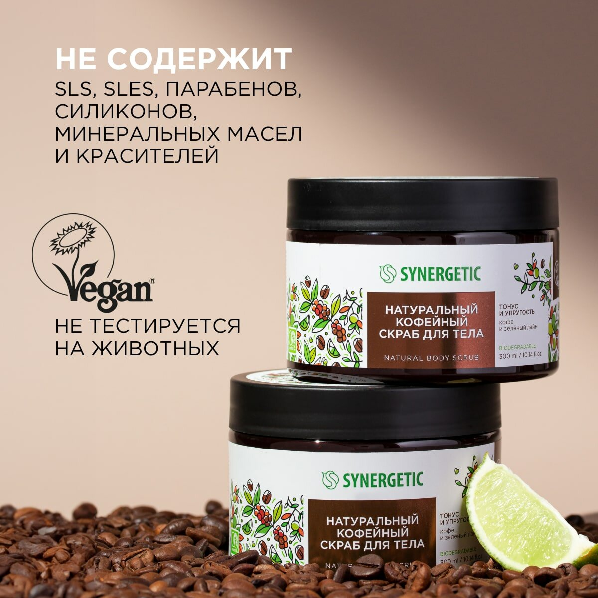 СохранитьСкраб для тела SYNERGETIC тонус и упругость "Кофе и зеленый лайм", 300 мл интересное: