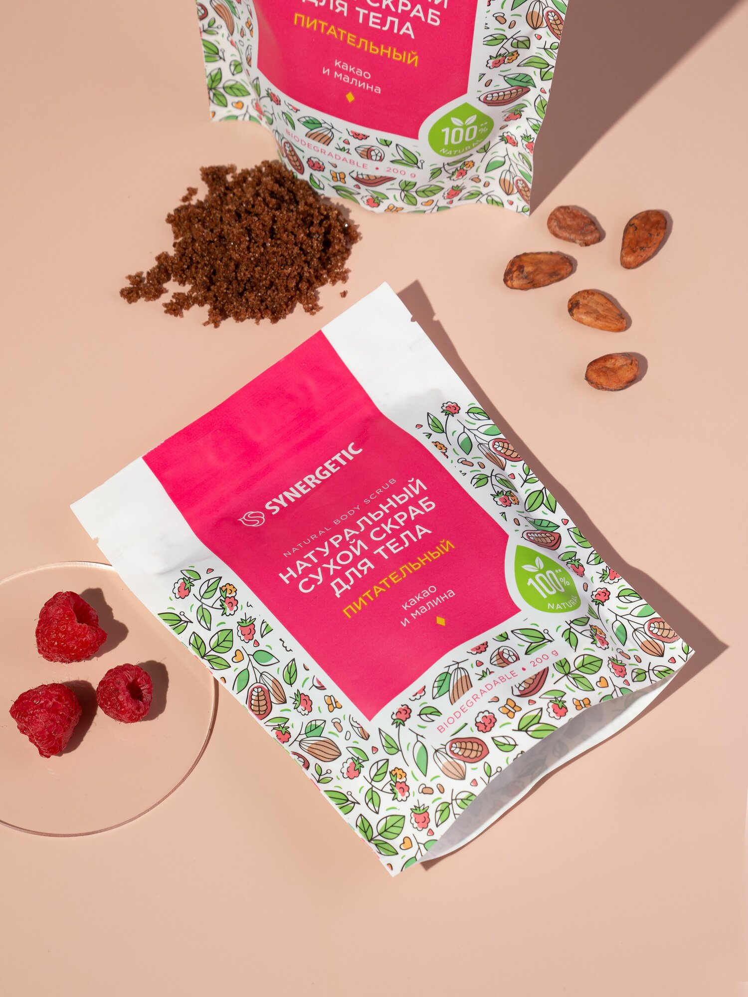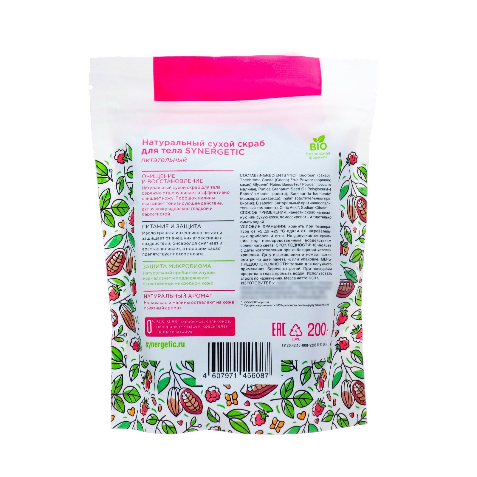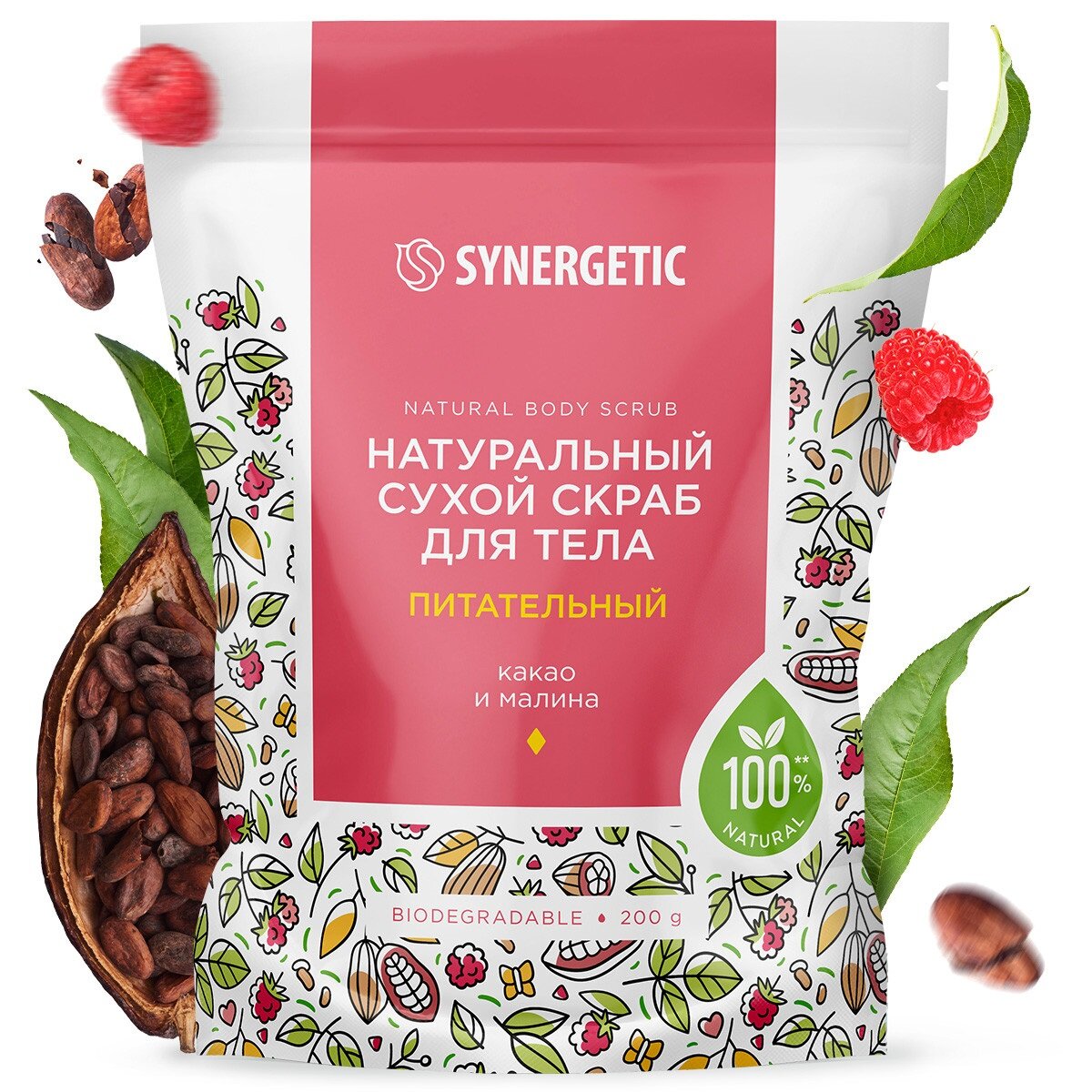 Сухой скраб для тела synergetic питательный какао и малина 200 г