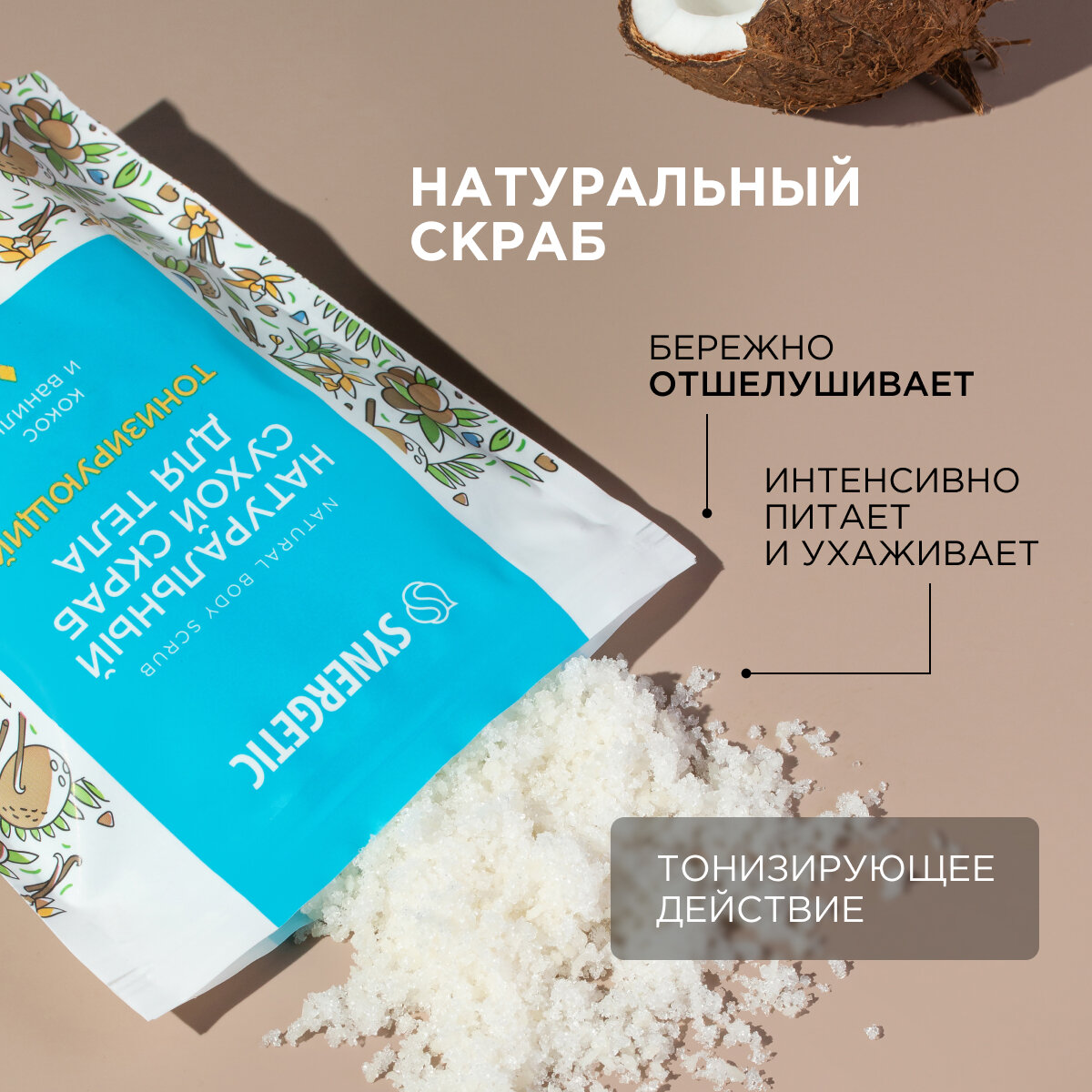 СохранитьСкраб для тела тонизирующий, сухой, натуральный 200гр - Synergetic [4607971456070] интересное: