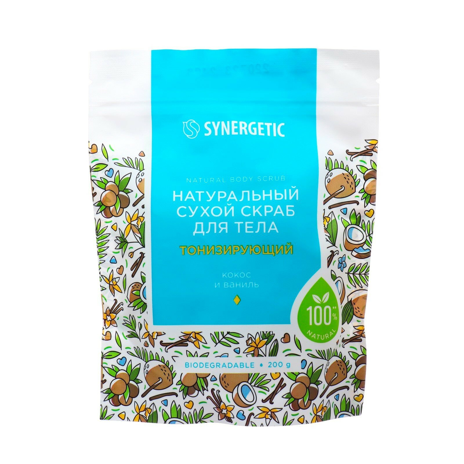Натуральный сухой скраб для тела SYNERGETIC тонизирующий, 200гр