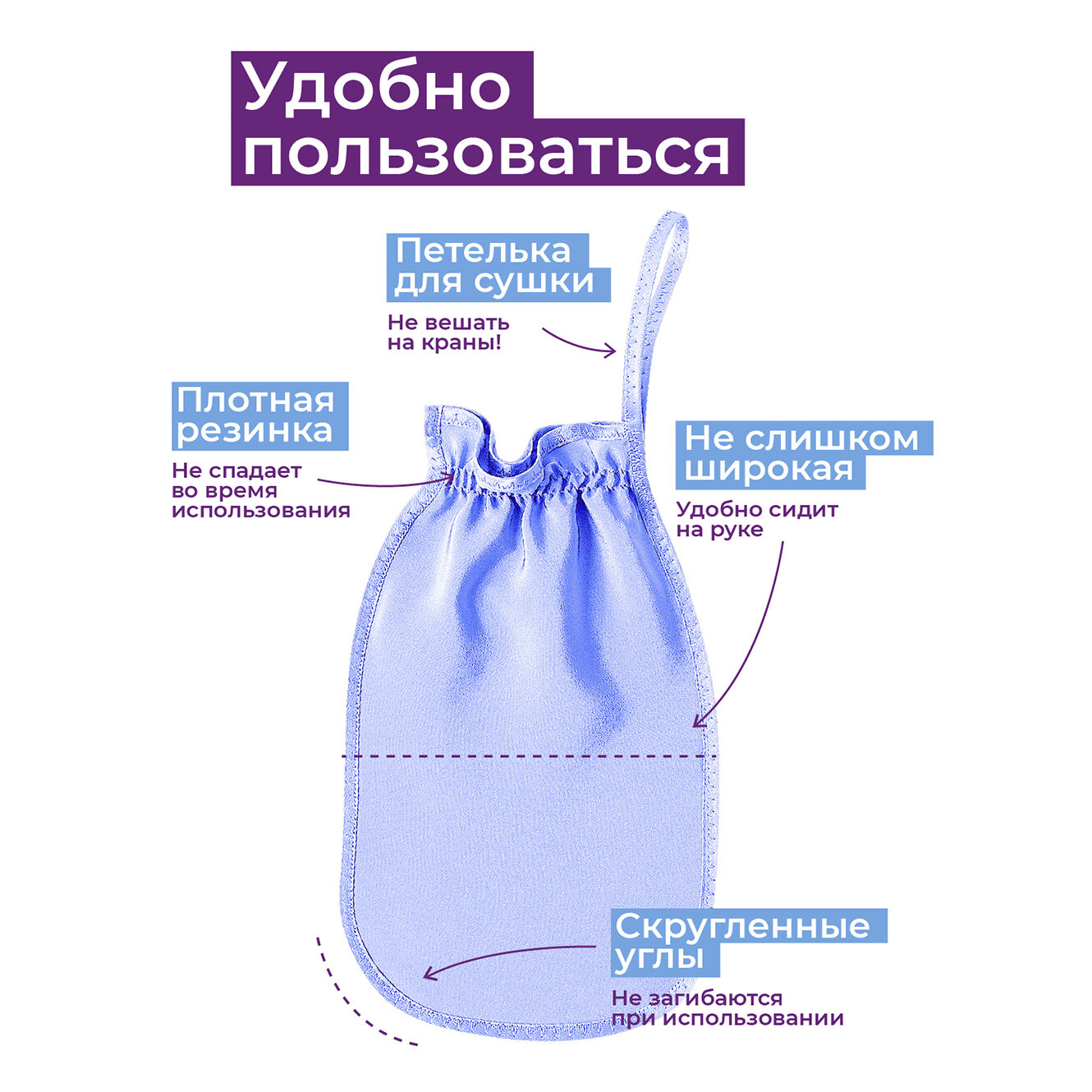 Пилинг-варежка Шелковица Стандарт, 100% натуральный шелк, отшелушивающая, для всех типов кожи, цвет Лаванда