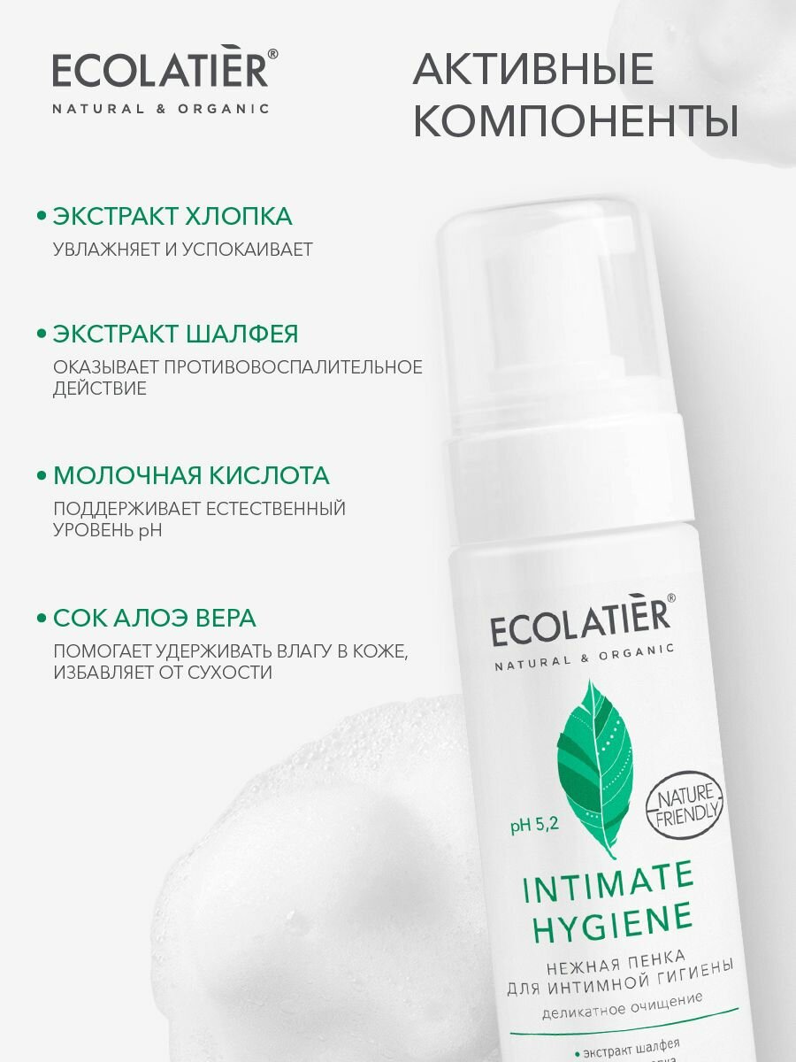 Нежная пенка для интимной гигиены Intimate Hygiene с экстрактами шалфея и хлопка, 150 мл, Ecolatier