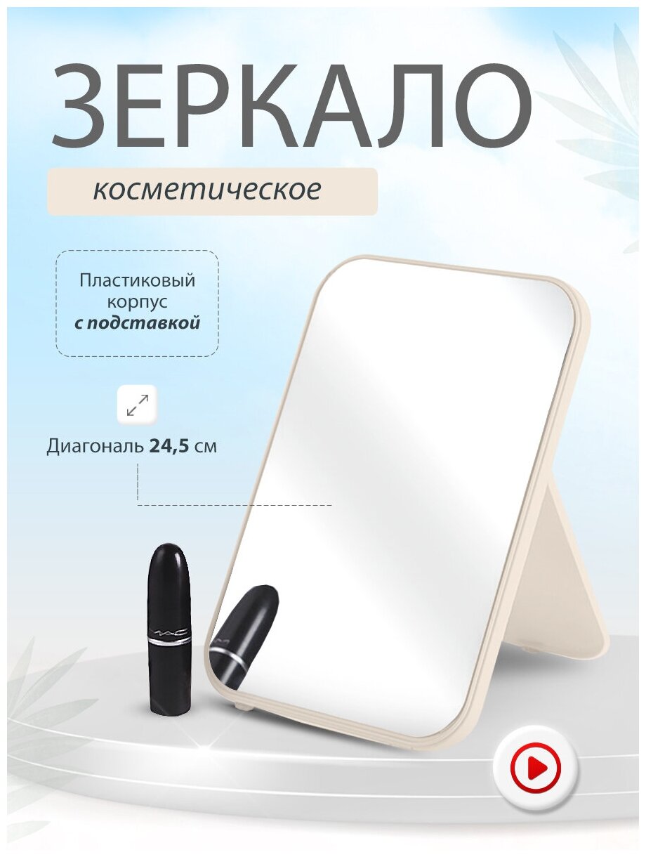 Зеркало настольное для макияжа. Косметическое, туалетное зеркало на подставке, белое. Размер M, 20х14 см.