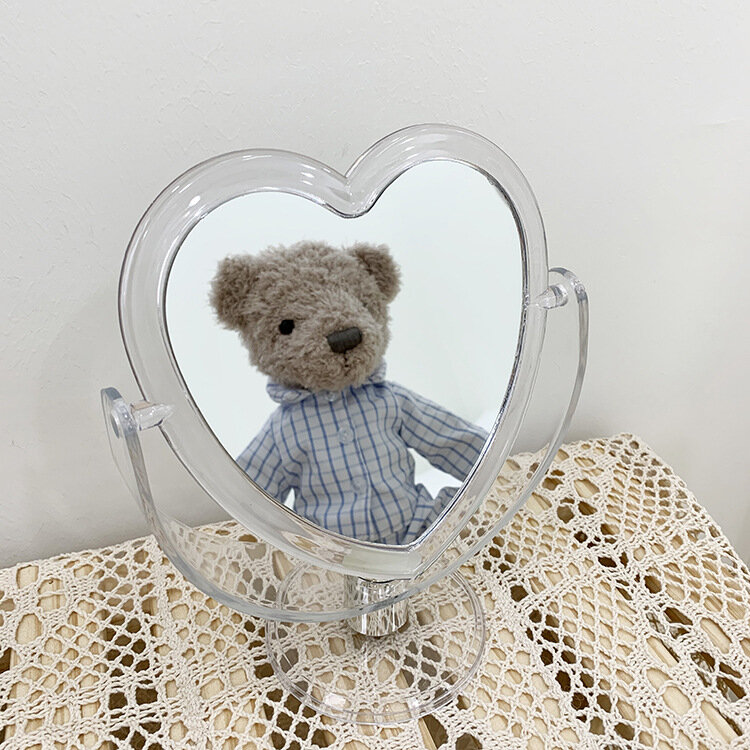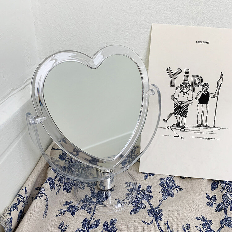 Зеркало настольное косметическое плешоп для макияжа в форме сердца, прозрачное, 12,5 см интересное: