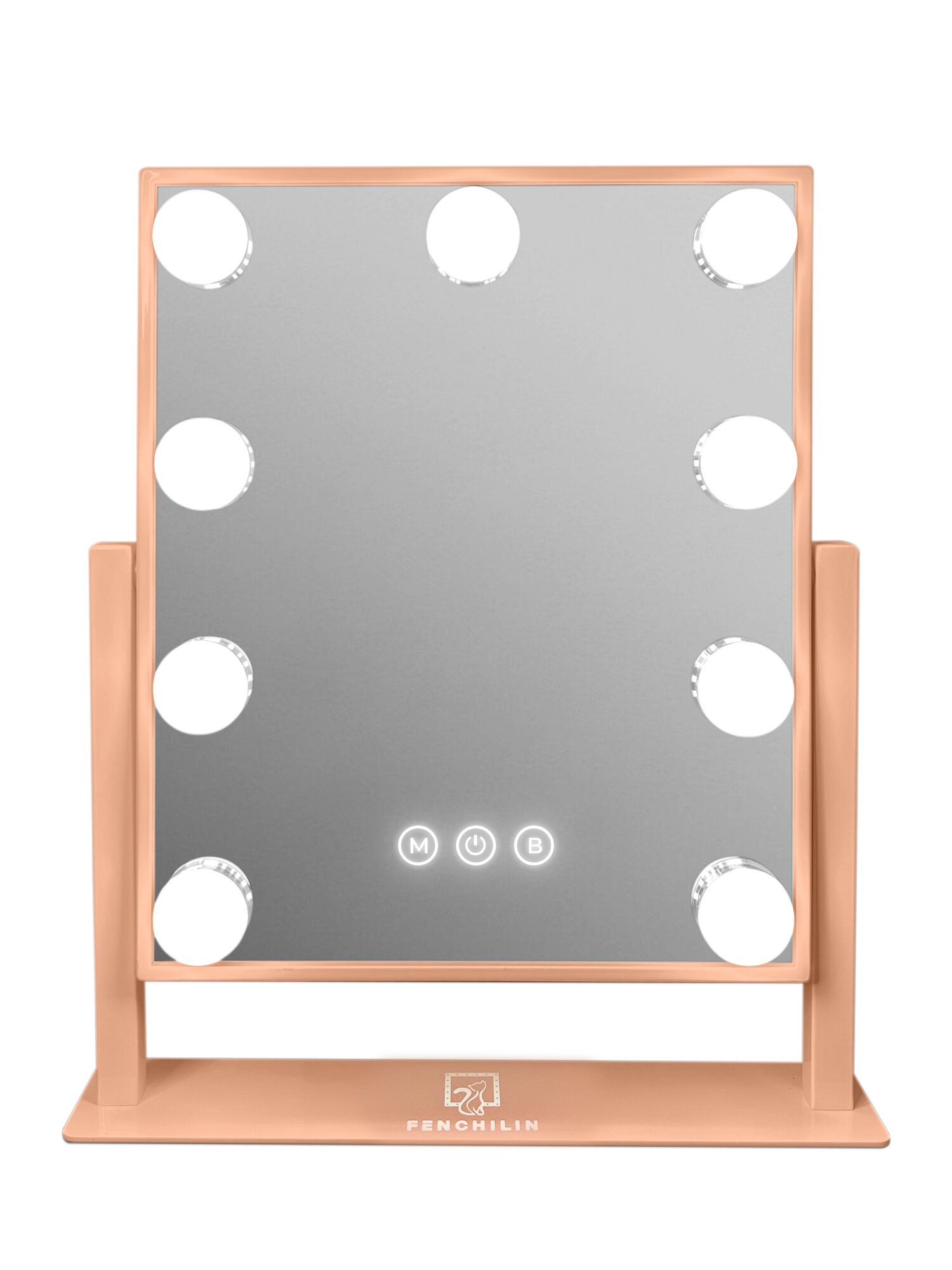 Профессиональное настольное зеркало c подсветкой для макияжа 30х25 см, DC117-7 серия HOLLYWOOD от FENCHILIN, розовое золото интересное: