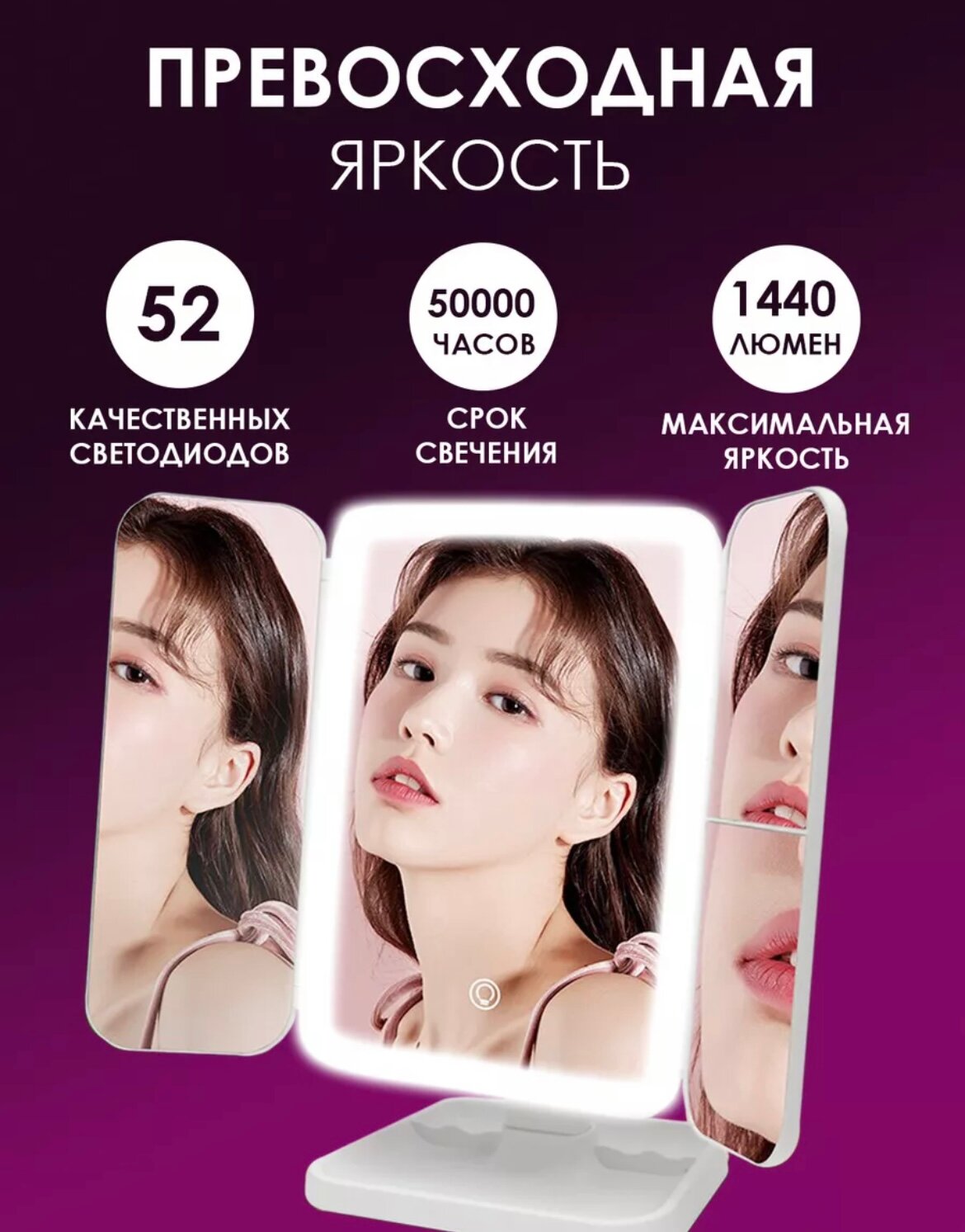 Зеркало косметическое с подсветкой 3 режима, LED белое