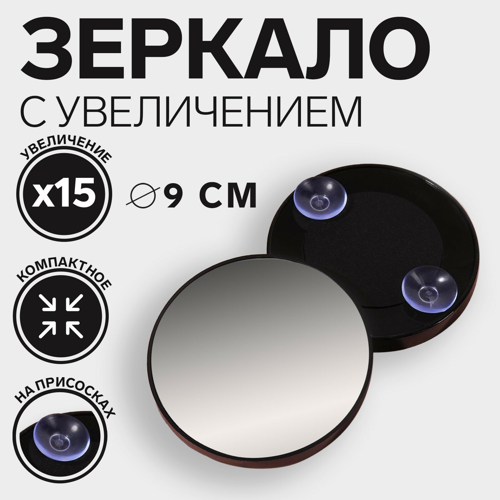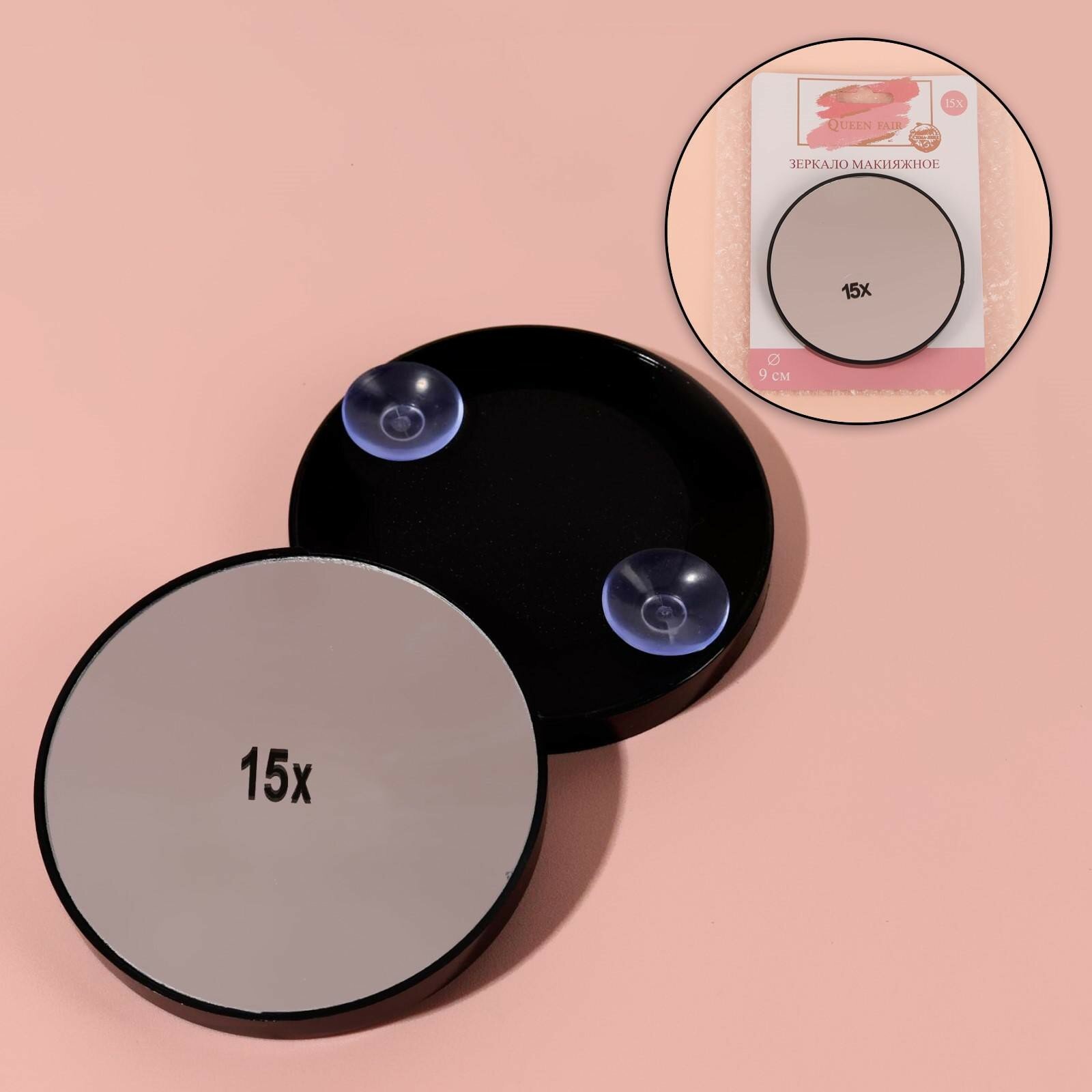 Зеркало макияжное, увеличение × 15, на присосках, d 9 см, цвет чёрный интересное: