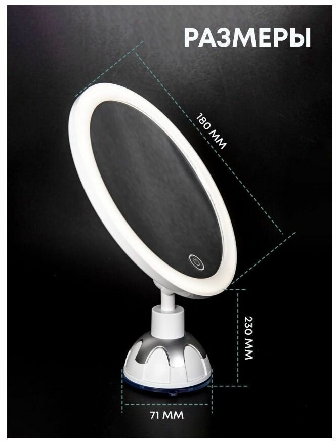 | Особенности | поворотное / регулировка яркости подсветки / с увеличением / сенсорный выключатель |