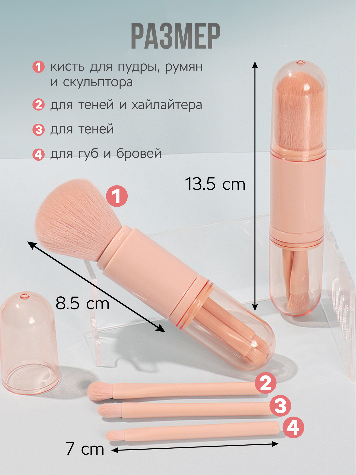 Кисти для макияжа, дорожный мини набор в футляре тубусе, 4 шт. интересное: