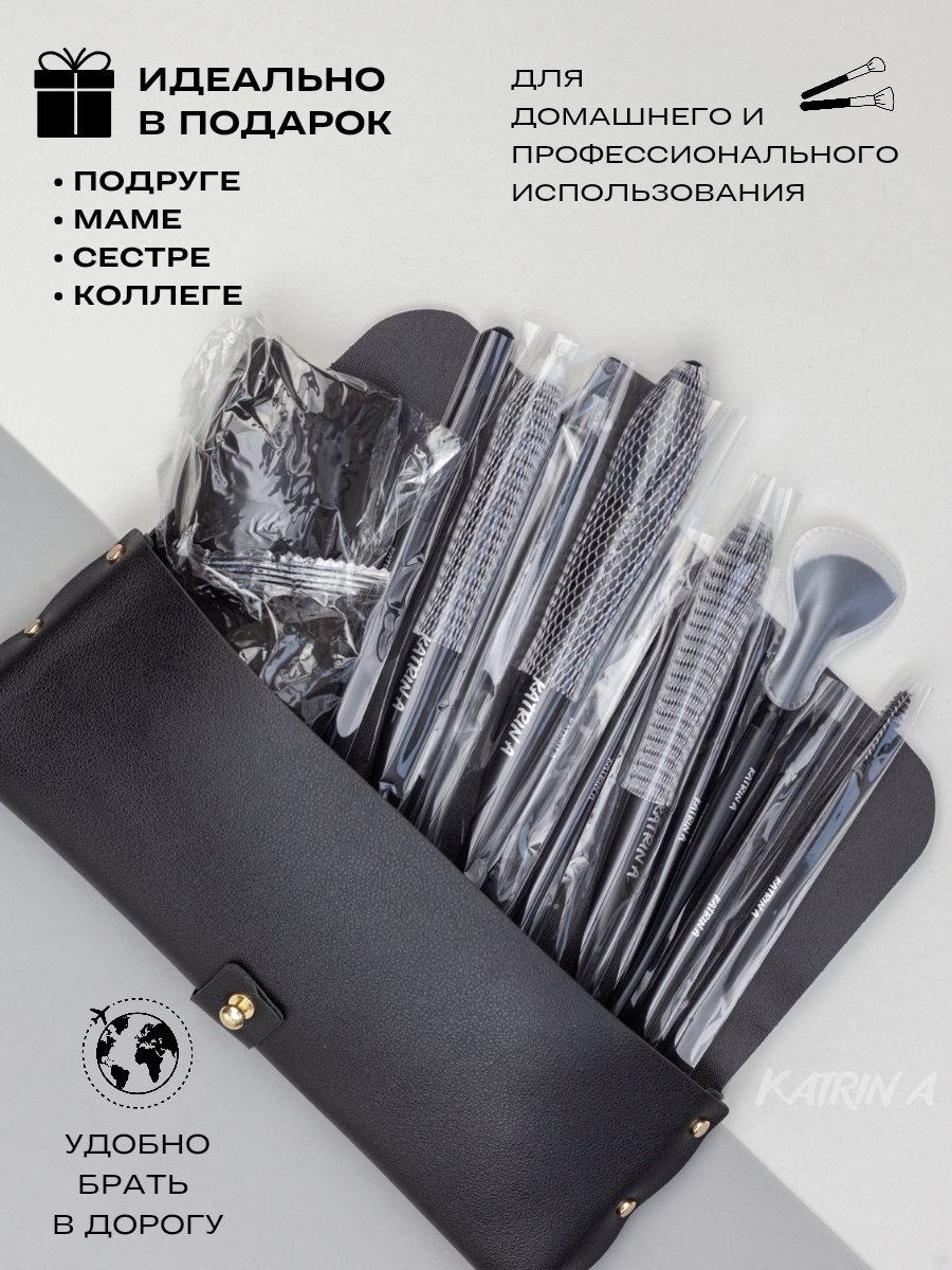 Кисти для макияжа / Набор кистей для лица черный в чехле интересное: