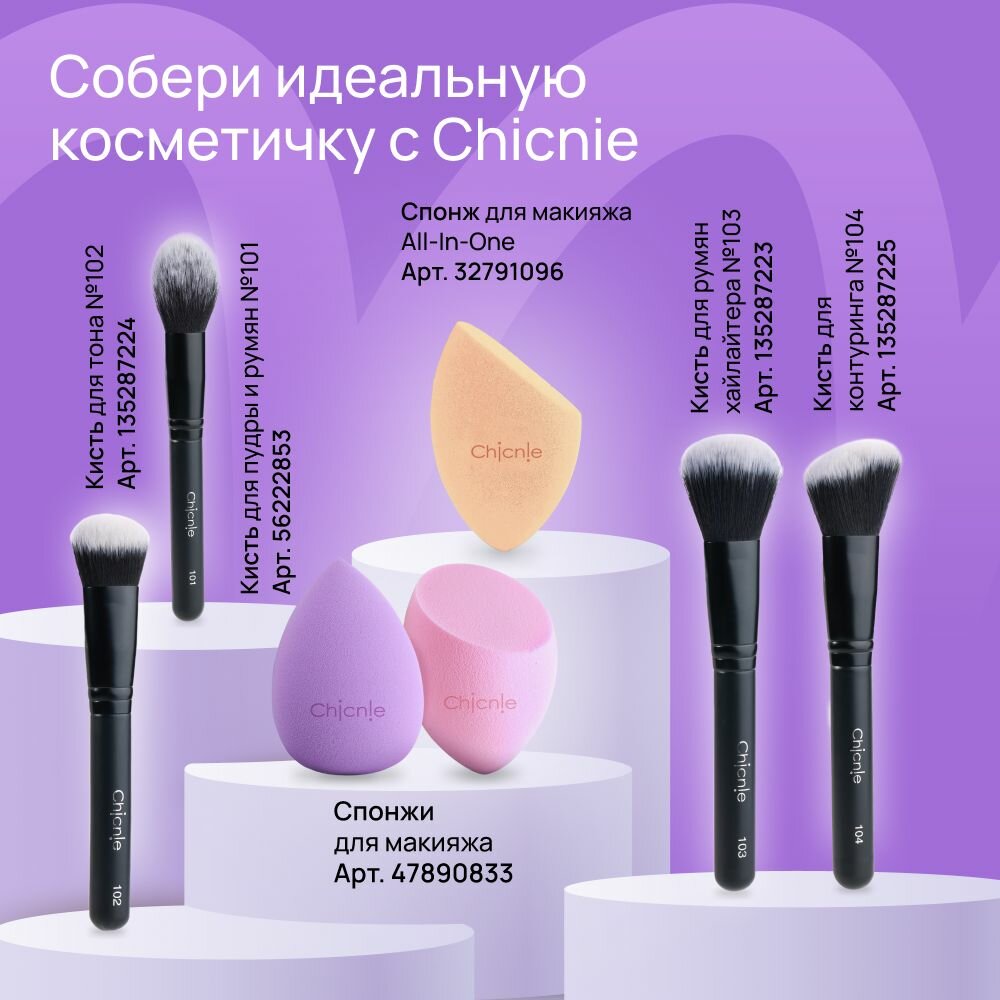 СохранитьБольшая кисть №101 для румян, пудры, бронзера, хайлайтера / CHICNIE Tapered Face Brush №101 интересное: