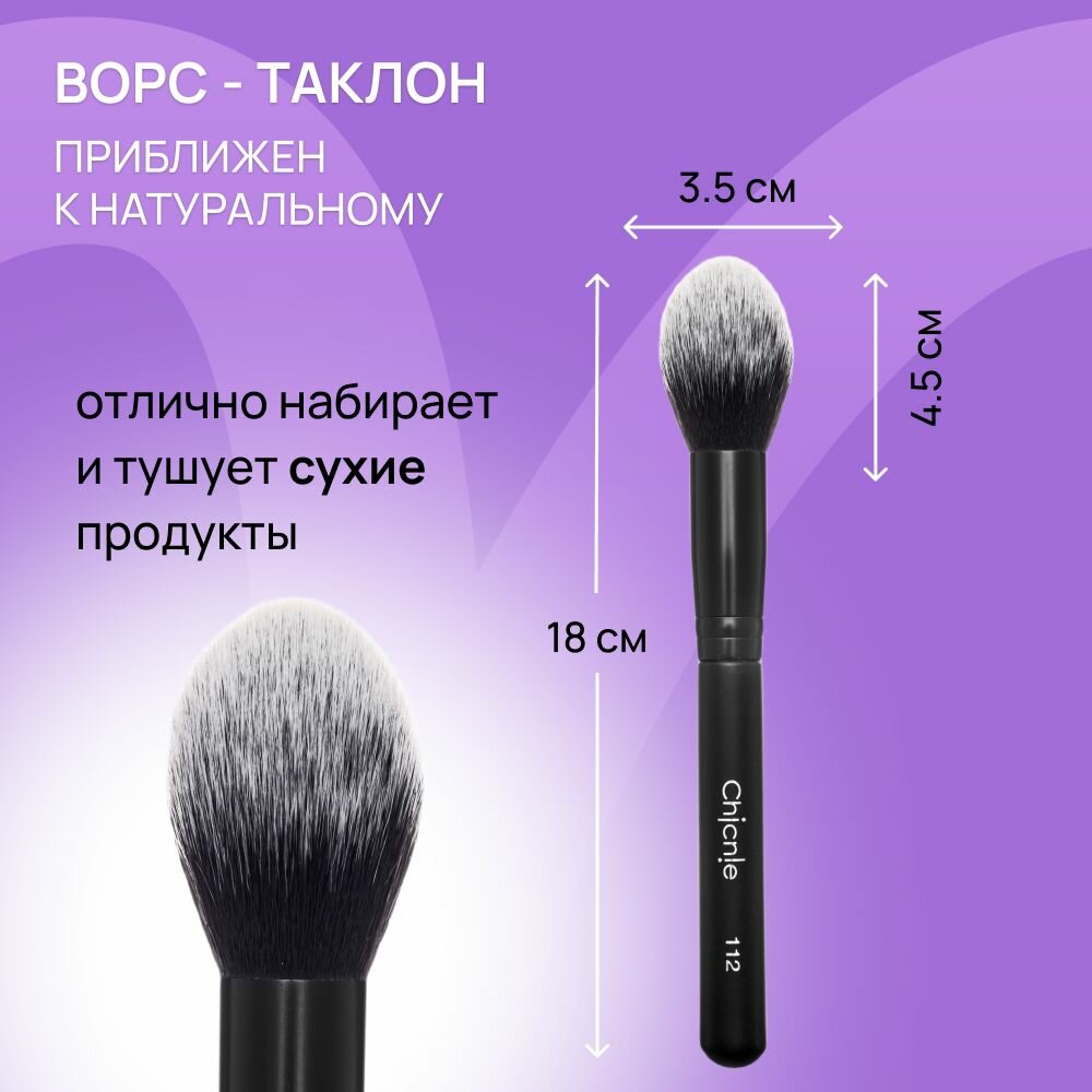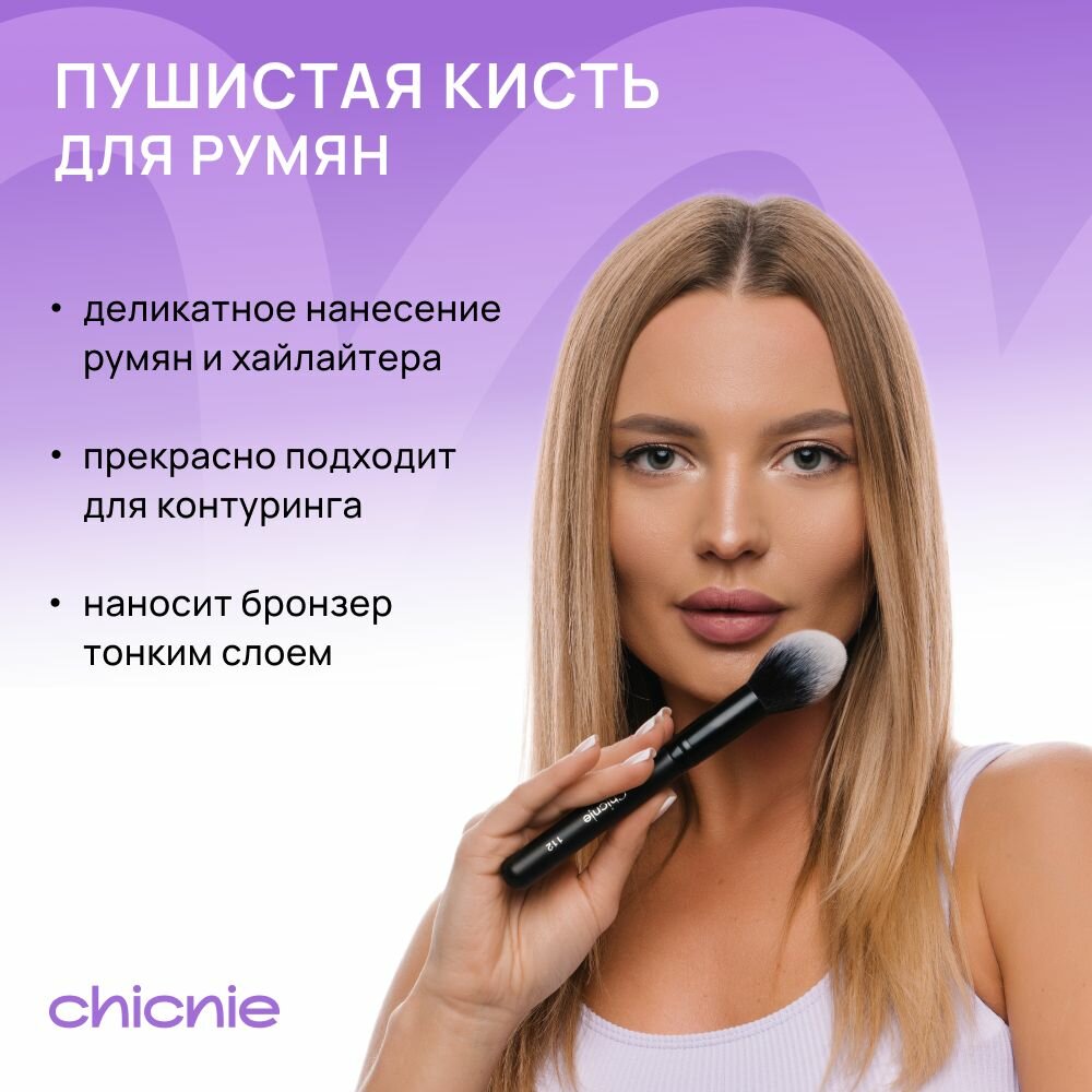 СохранитьКисть №112 для румян, контуринга, бронзера, хайлайтера, скульптора / CHICNIE Tapered Blush Brush №112 интересное: