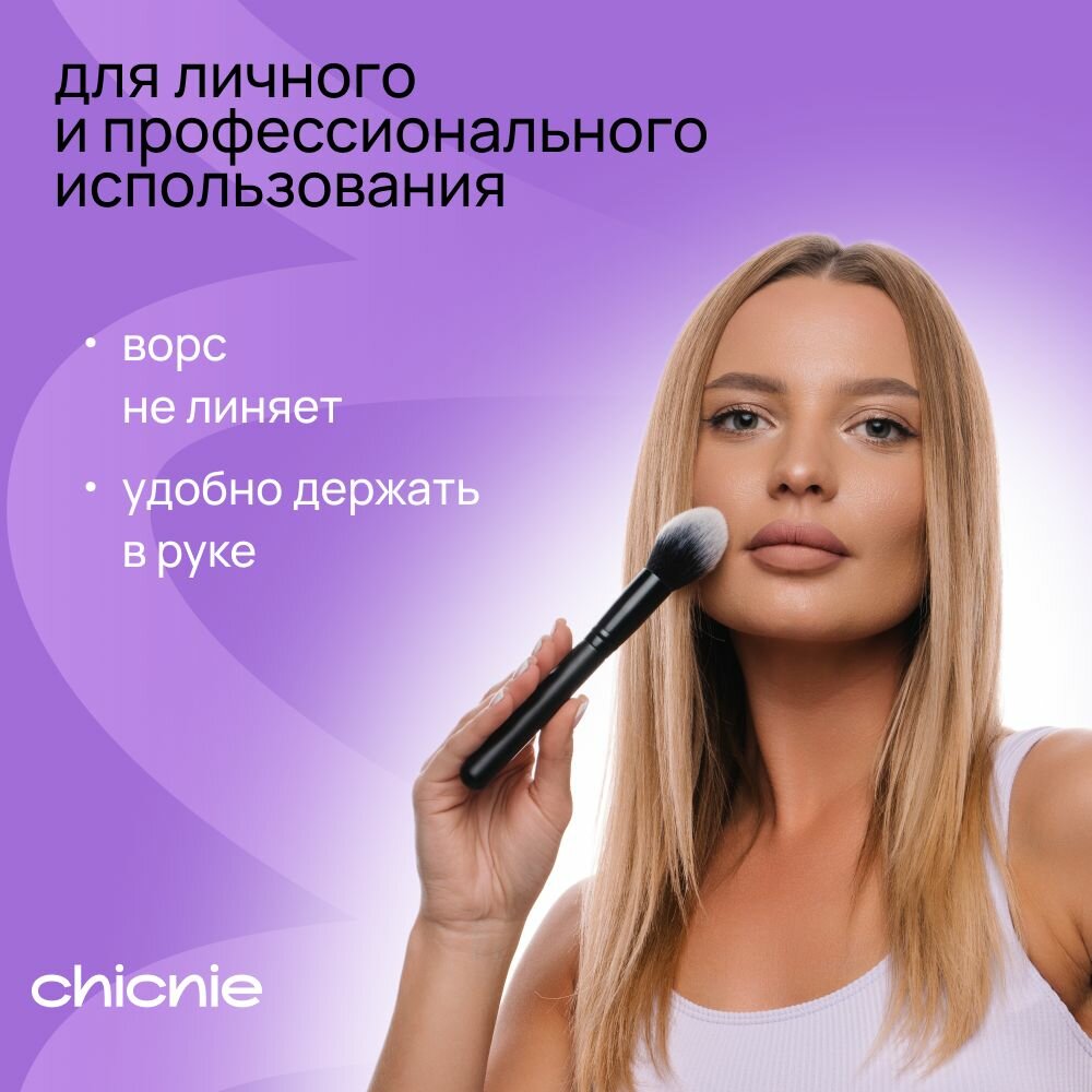 Большая кисть №101 для румян, пудры, бронзера, хайлайтера / CHICNIE Tapered Face Brush №101