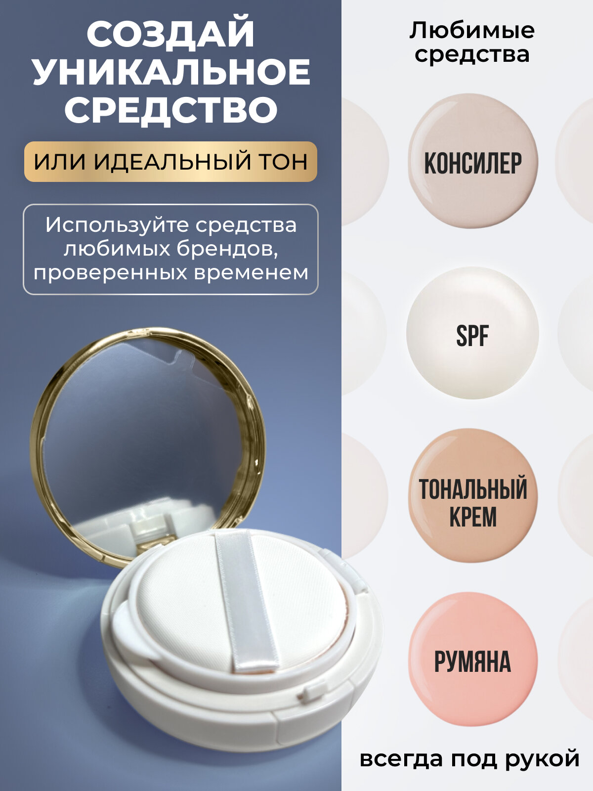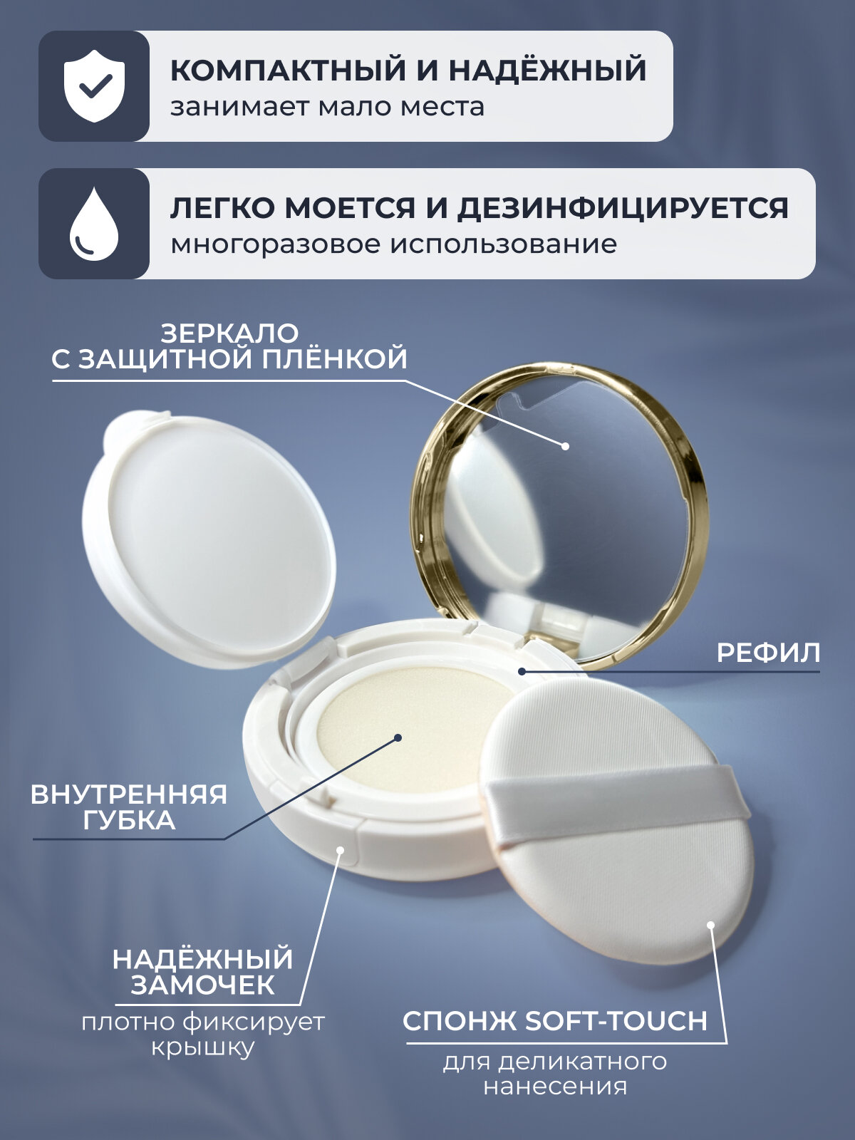 "Футляр-кушон Hottie" - пустой футляр для кушонов с удобным спонжем белый/золото интересное: