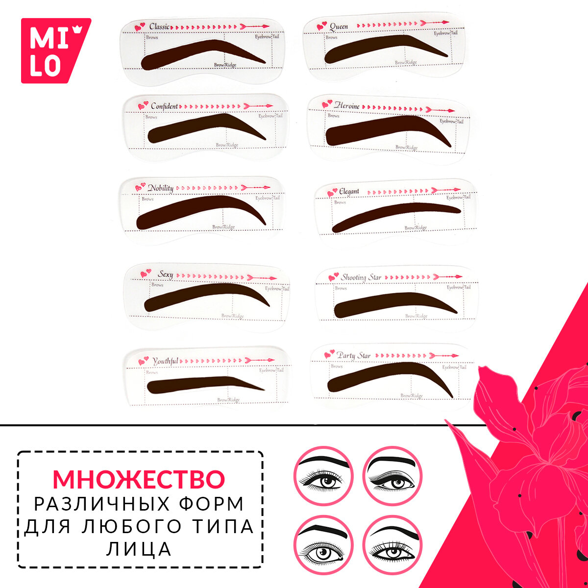 Купить Многоразовые трафареты для бровей MiLO - Шаблоны для создания ровной формы и удобного окрашивания бровей - Набор из 10 различных форм