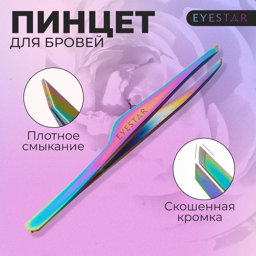 Купить Профессиональный пинцет для бровей скошенный, цвет хамелеон, изогнутые щипчики для коррекции бровей и ресниц, острая заточка
