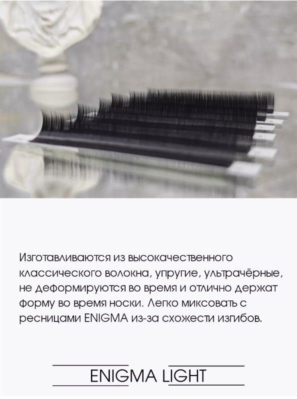 Ресницы Enigma для наращивания, черные, light, микс 0,10 C 7-14 mm 16 линий