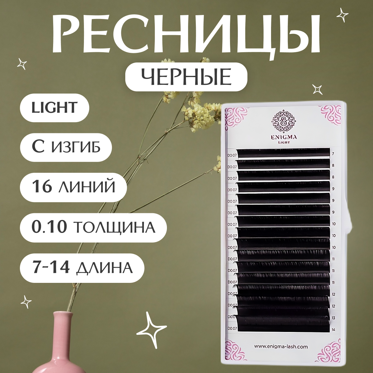 Купить Ресницы Enigma для наращивания, черные, light, микс 0,10 C 7-14 mm 16 линий