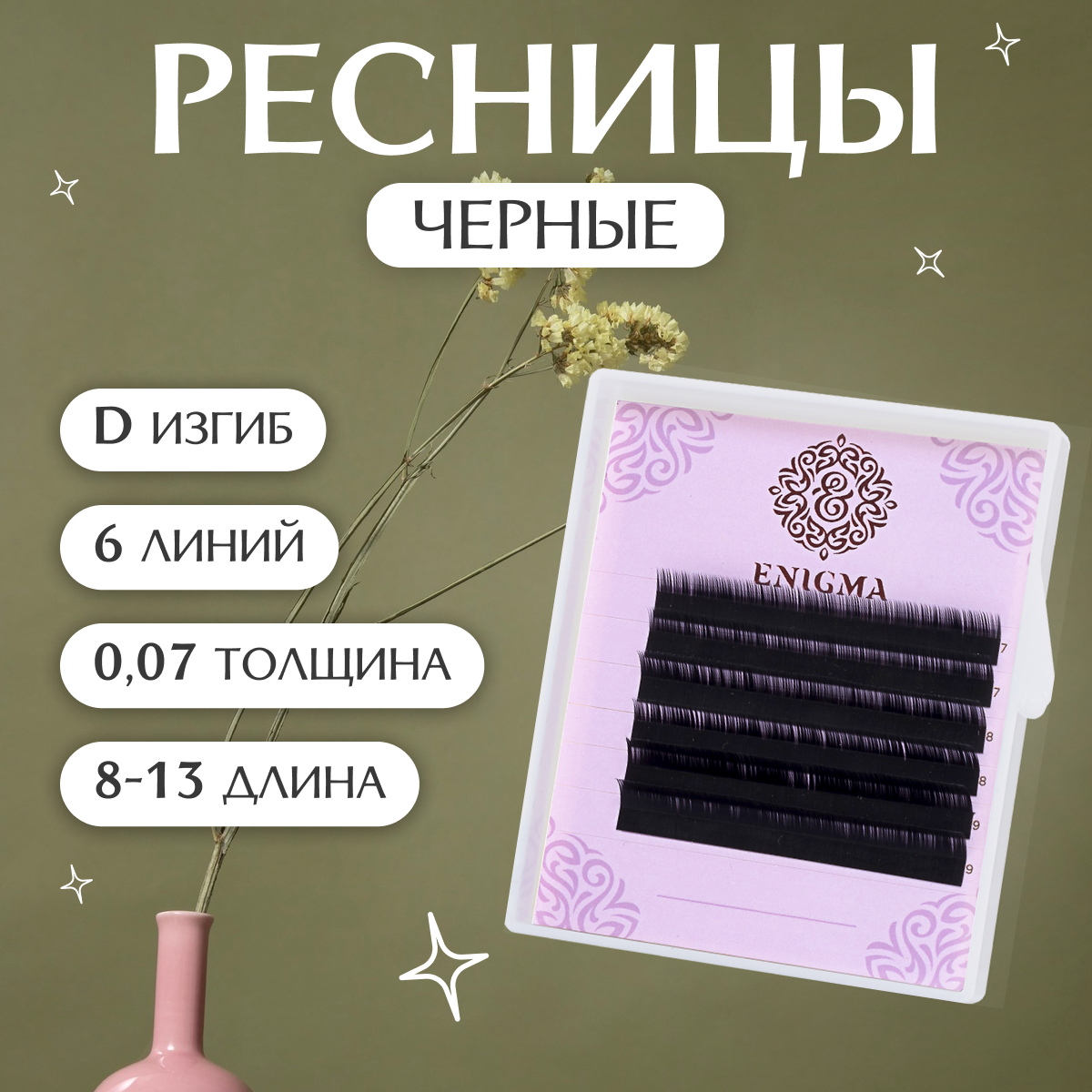 Ресницы Enigma MINI, L, 0.07, 13 mm, 6 линий