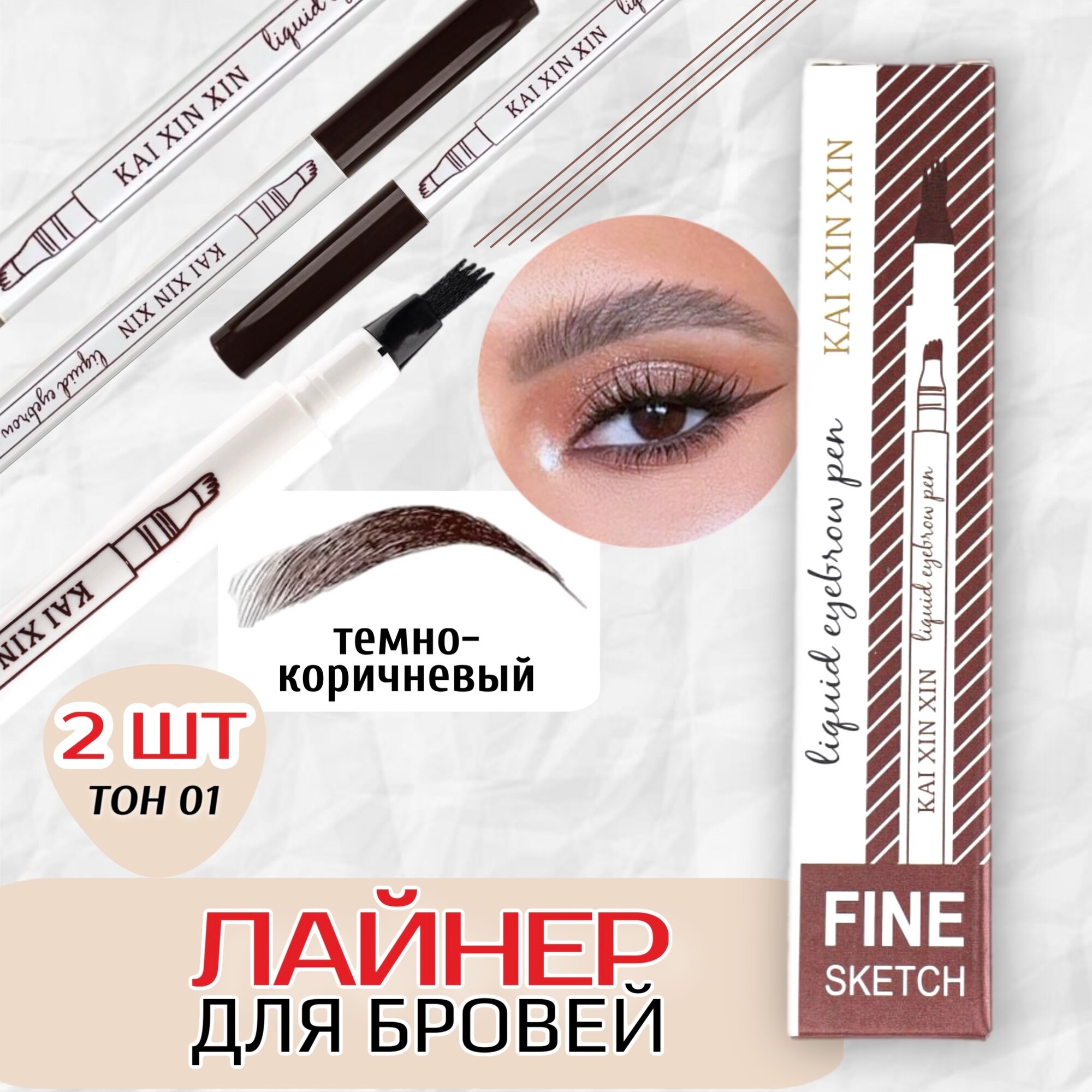Карандаш для бровей Fine Sketch, коричневый 2 шт / Водостойкий маркер для бровей/лайнер/Лайнер для бровей