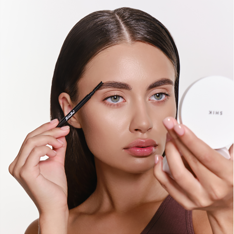 | Способ применения | Расчешите брови щеточкой. Выдвинете карандаш на 1-2 мм. Выделите форму бровей с помощью карандаша. Растушуйте с помощью щеточки. Для большей стойкости закрепите результат прозрачным гелем для бровей CLEAR EYEBROW GEL SHIK. |