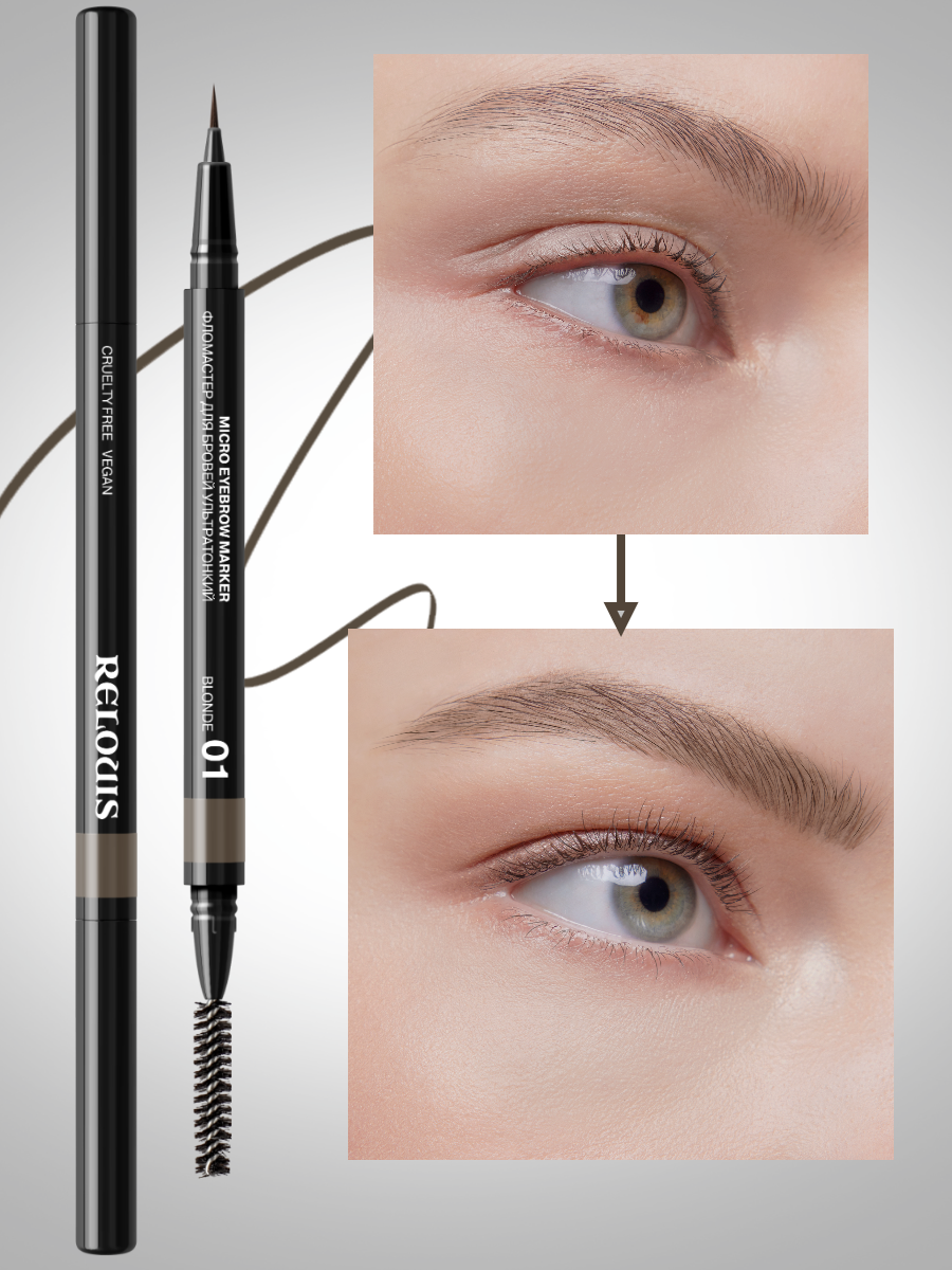 Фломастер для бровей ультратонкий маркер со щёточкой Relouis 01 blond интересное: