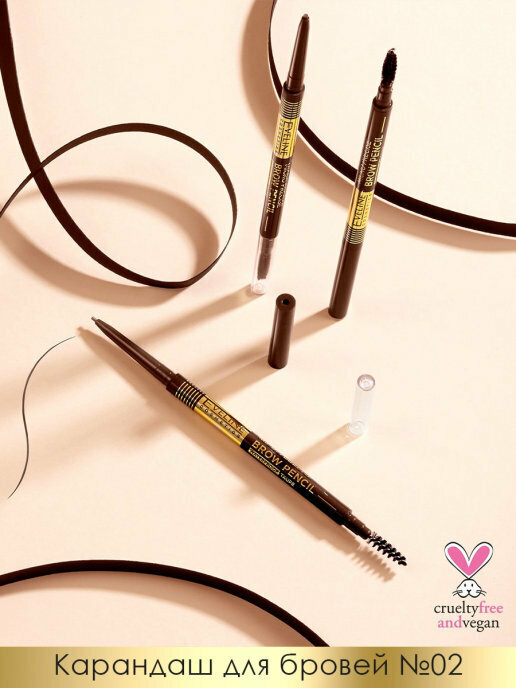 EVELINE Карандаш для бровей MICRO PRECISE BROW PENCIL водостойкий №02 SOFT BROWN