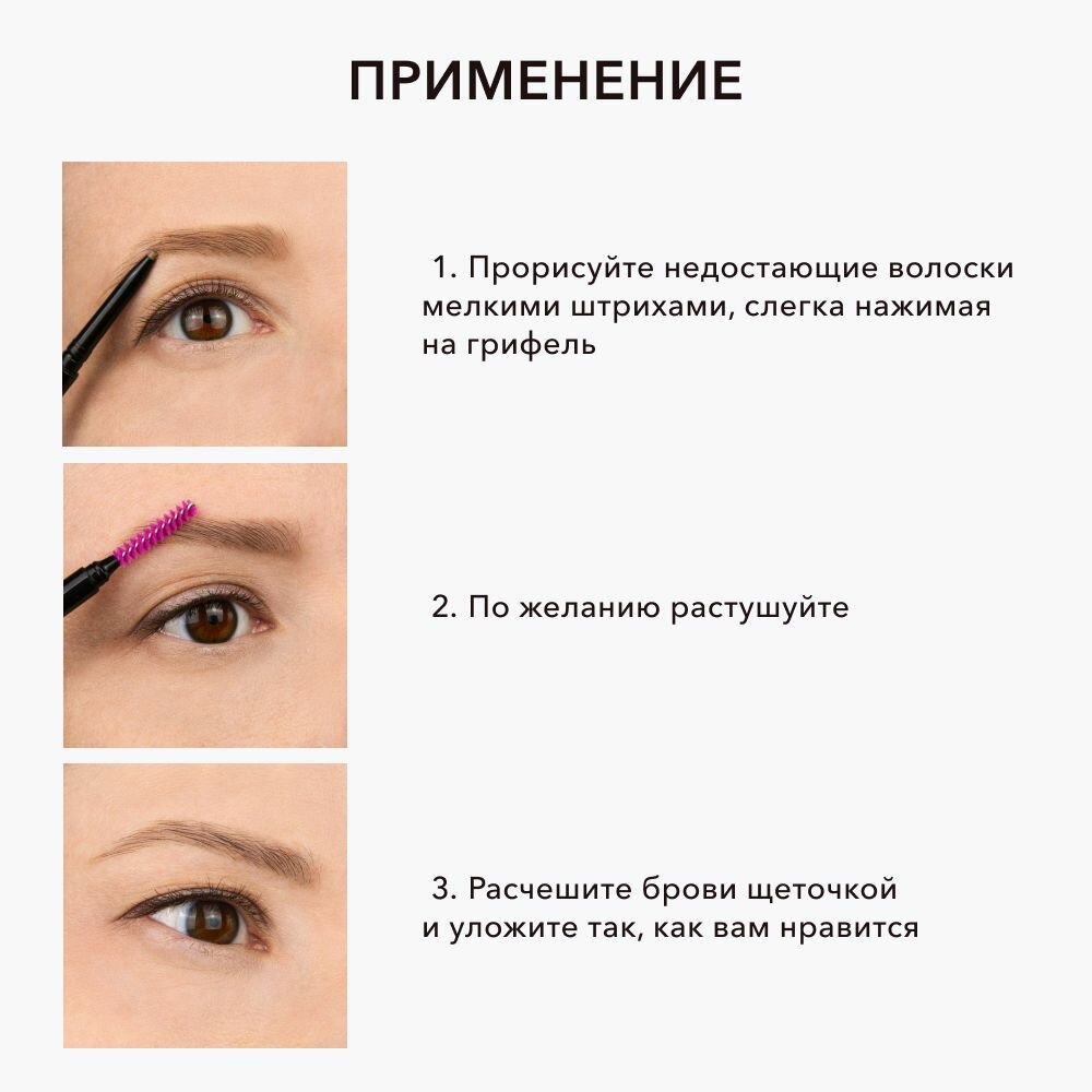 | Способ применения | Карандаш для бровей, механический, водостойкий в оттенке Decaf (светло-коричневый) - 1 шт |