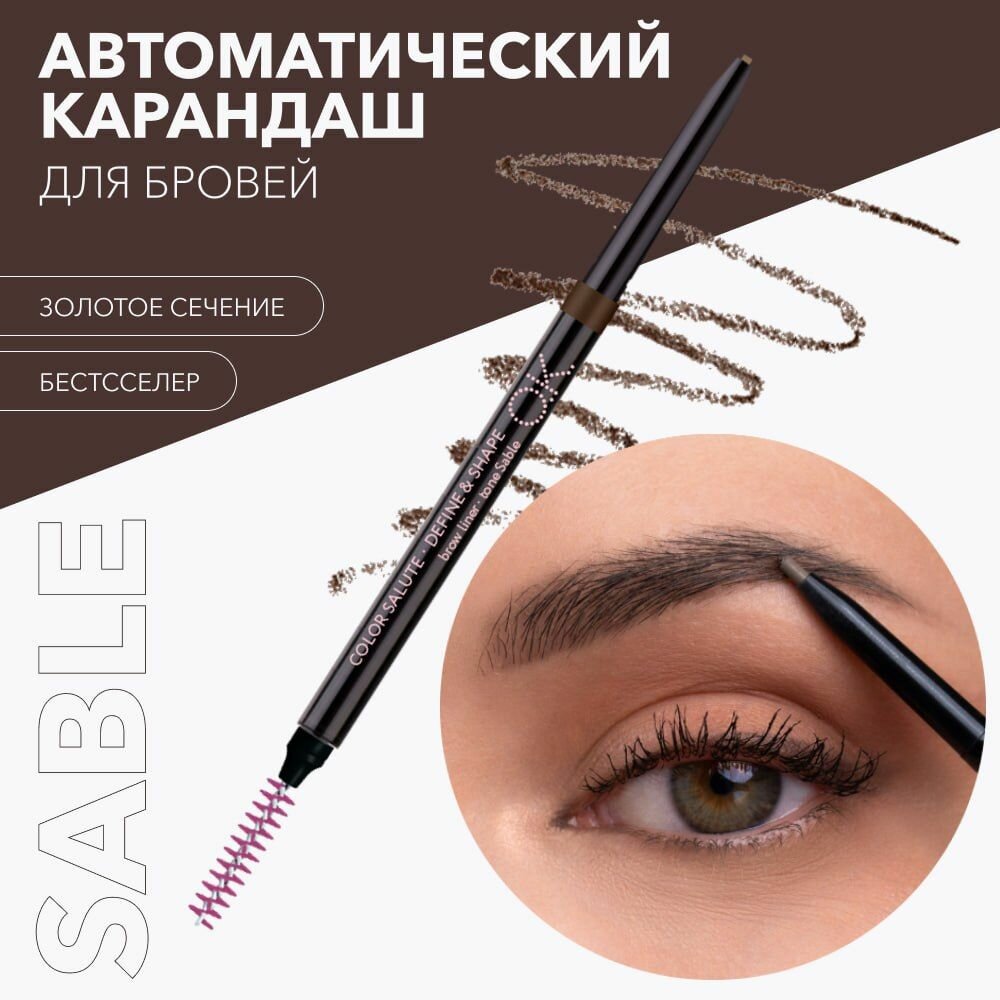 OK Beauty Карандаш для бровей, стойкий, автоматический, пудровый, водостойкий, тонкий, с щеткой, оттенок Sable (тёмно-коричневый) интересное: