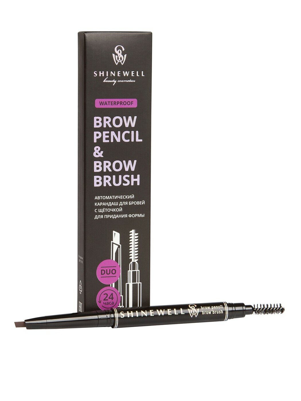 SHINEWELL Карандаш для бровей со щёточкой для придания формы, автоматический, цвет тёмно-коричневый, 14 г