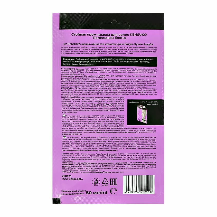 Крем-краска для волос KENSUKO Пепельный блонд 50 мл интересное:
