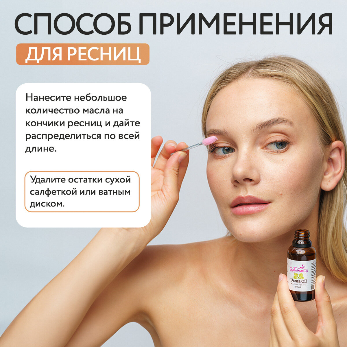 | Способ применения | - очистите ресницы, брови и кожу век от макияжа - небольшое количество масла нанесите щеточкой на ресницы/брови по направлению роста волос - при необходимости излишки масло удалите сухой салфеткой - наносить 1 раз в день, вечером. Оставить до утра. Утром смыть средством для умывания. - рекомендованный курс для укрепления и стимуляции роста бровей/ресниц 3-4 недели - Не допускать попадания в глаза. - Только для наружного применения! |