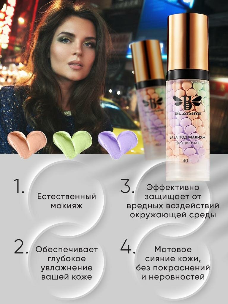 Выравнивающая матирующая база под макияж BLAISINE / Праймер для лица под макияж / Тональная основа под макияж трехцветная / Тональная основа для лица интересное: