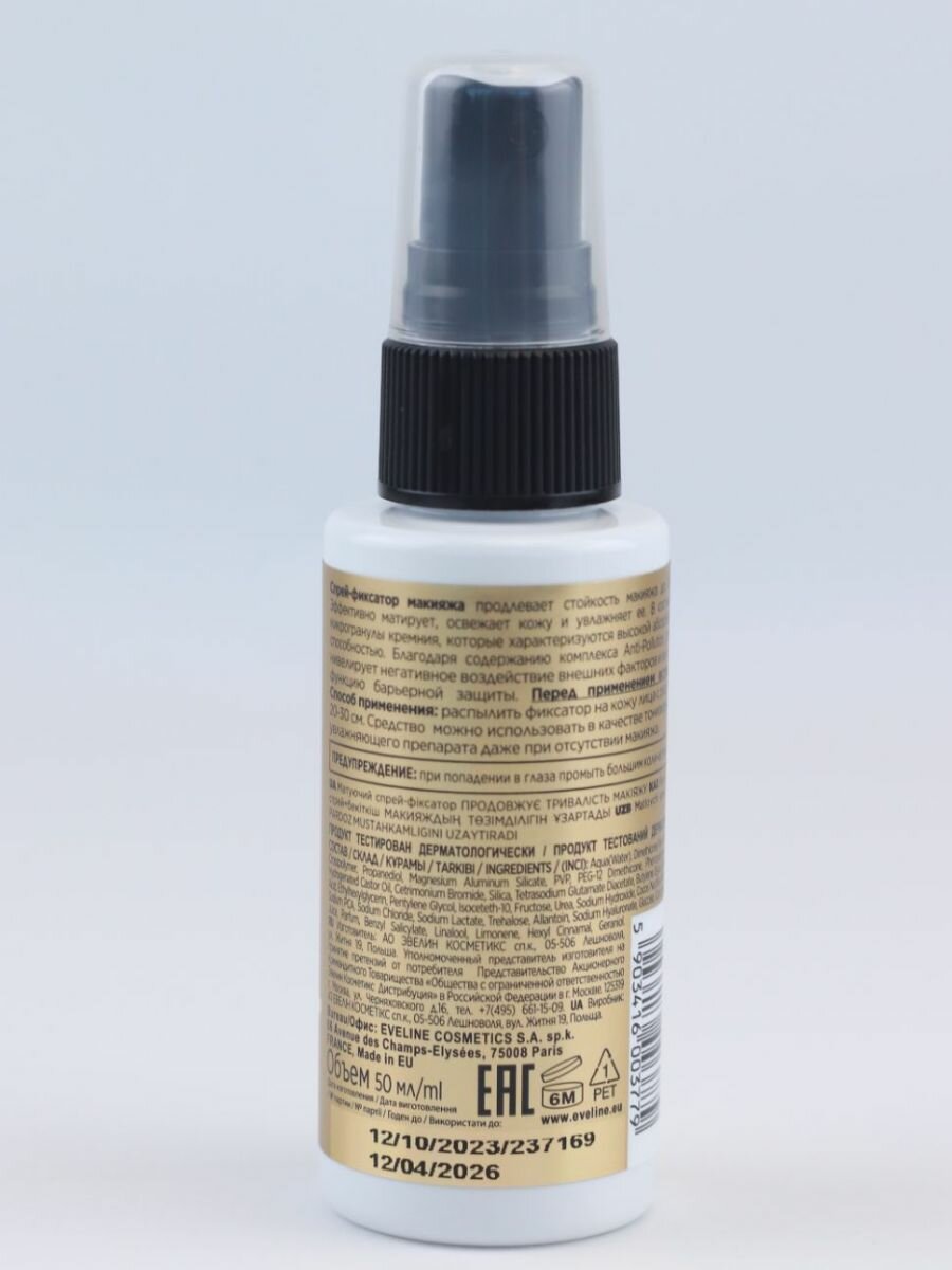 EVELINE Спрей-фиксатор для макияжа MATTIFYING FIXER MIST HD матирующий, 50 мл