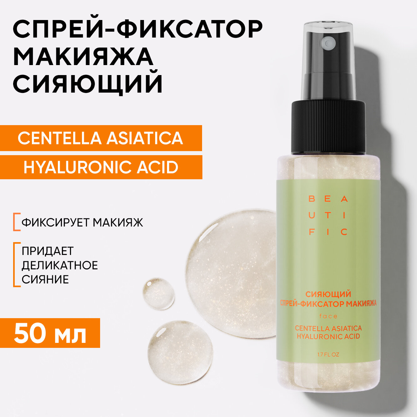 BEAUTIFIC Спрей фиксатор для макияжа сияющий с шиммером, увлажняющий, 50 мл интересное: